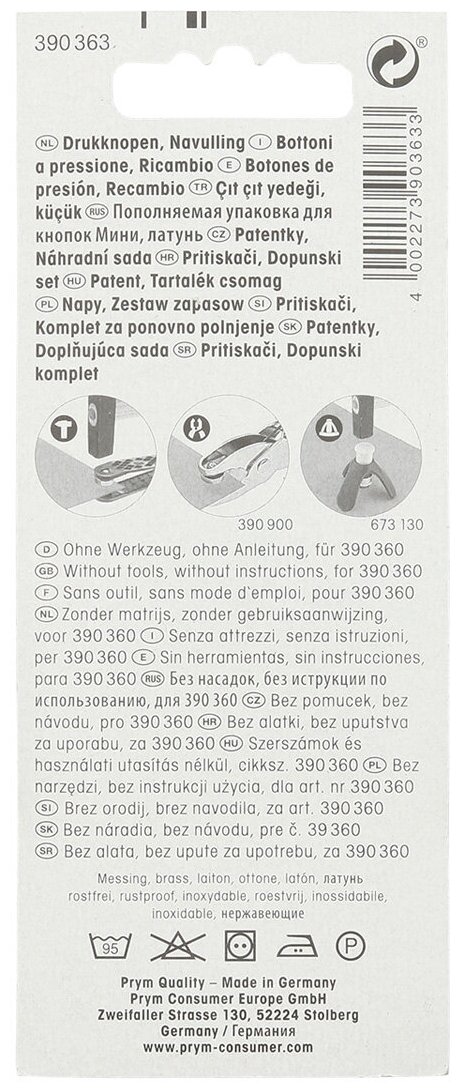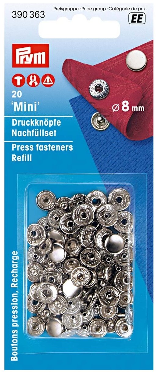 390363 Кнопки MINI (латунь) к 390360 серебристый цв. 8 мм Prym. 20шт. Prym