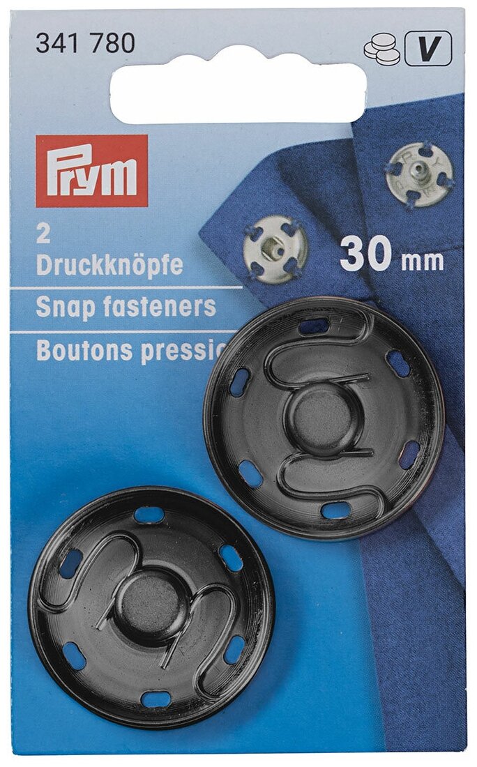 341780 Пришив.кнопки 30мм цв.оружейн. металла 2шт Prym