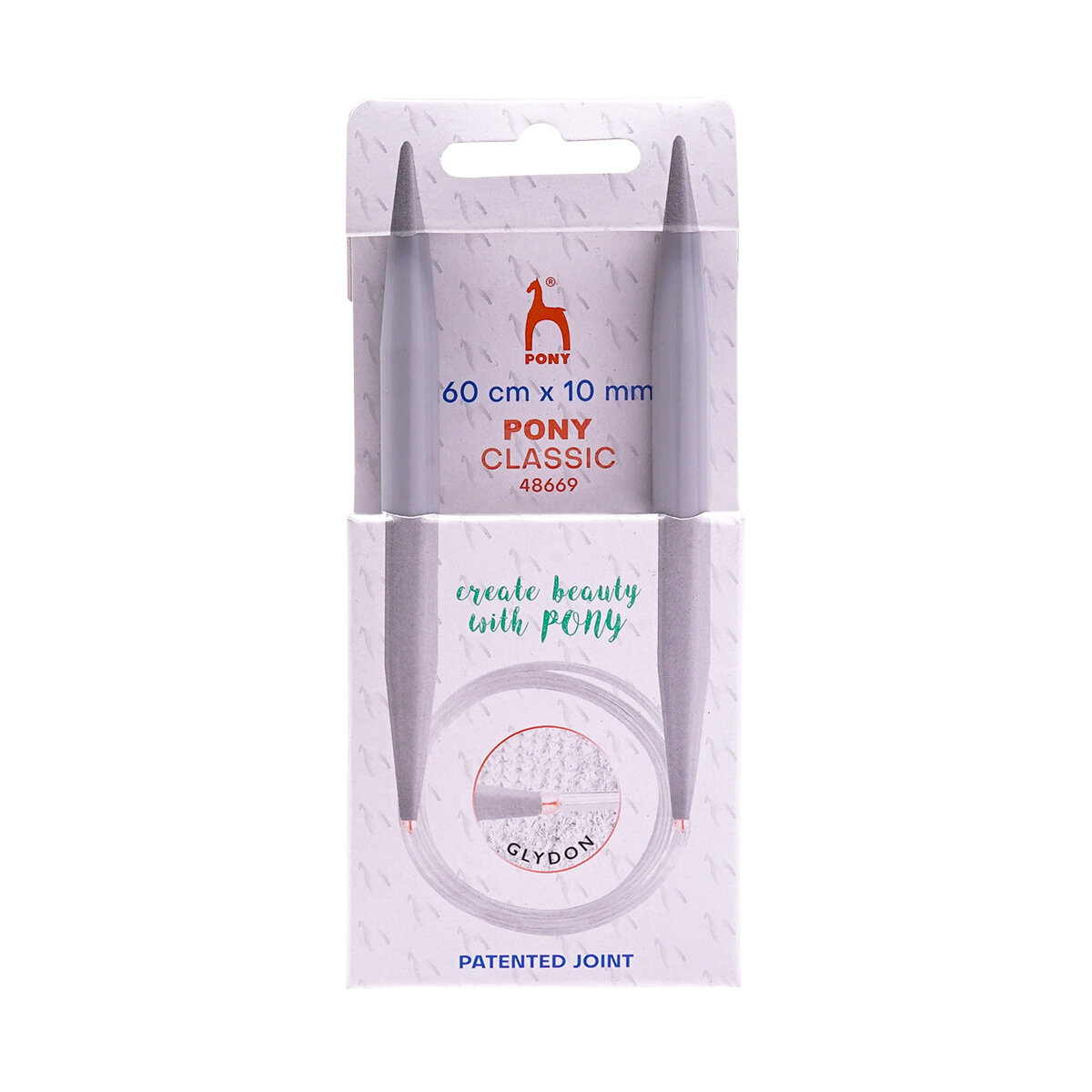 Удобные круговые спицы Pony, изготовленные из практичного легкого пластика с гибким тросиком, идеально подходят для вязания бесшовных и крупных деталей одежды. Круговые спицы имеют запатентованное соединение с леской – GLYDON. Оно обеспечивает плавное скольжение петель при вязании. Гладкая поверхность спиц, соприкасаясь с пряжей, не нарушает структуру нити. \обратите внимание: на данных спицах не рекомендуется вязать плотное полотно, а также работать с трикотажной пряжей.PONY – это всемирно известный индийский бренд, продукция которого востребована на всех континентах мира и славится своим высоким качеством и разнообразным ассортиментом товаров. Спицы - это практичный для вязальщицы, она по достоинству оценит их безупречное качество. Желаем вам ровных петелек! Общая длина: 60 см Диаметр спицы: 10 мм
