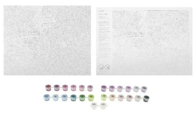| Комплектация | Контрольный лист схема; набор красок и лак; Холст, акриловые краски, кисти -3 шт. |