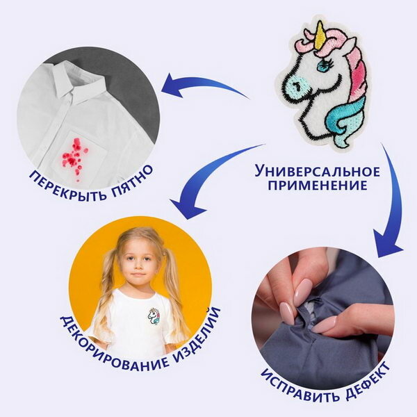 Вышитая термоаппликация 'Единорог' – модная деталь, которой украшают вещи, а также для маскируют поврежденные участки. Идеально подходит для детской и молодежной одежды. Лучший материал для аппликаций – плотные хлопковые и льняные ткани. Украсьте аппликацией рюкзак, джинсовую куртку, панаму или комбинезон, и они приобретут индивидуальный облик.