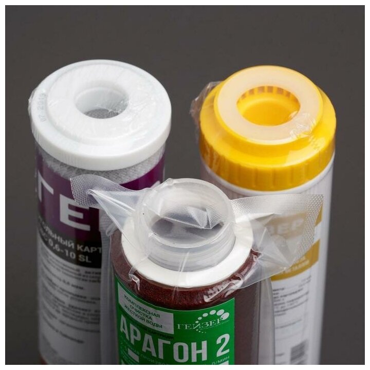 Комплект картриджей Гейзер № предназначен для замены исчерпавших свой ресурс картриджей в стационарных трехступенчатых фильтрах для сверхжесткой воды. Признаки сверхжесткой воды: накипь белого цвета в чайнике после первого кипячения, частый белый налет на сантехнике, пленка в чае.