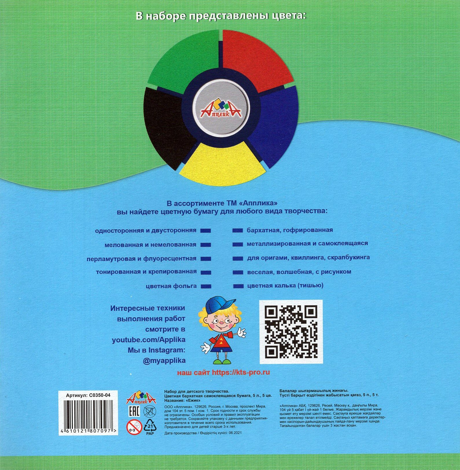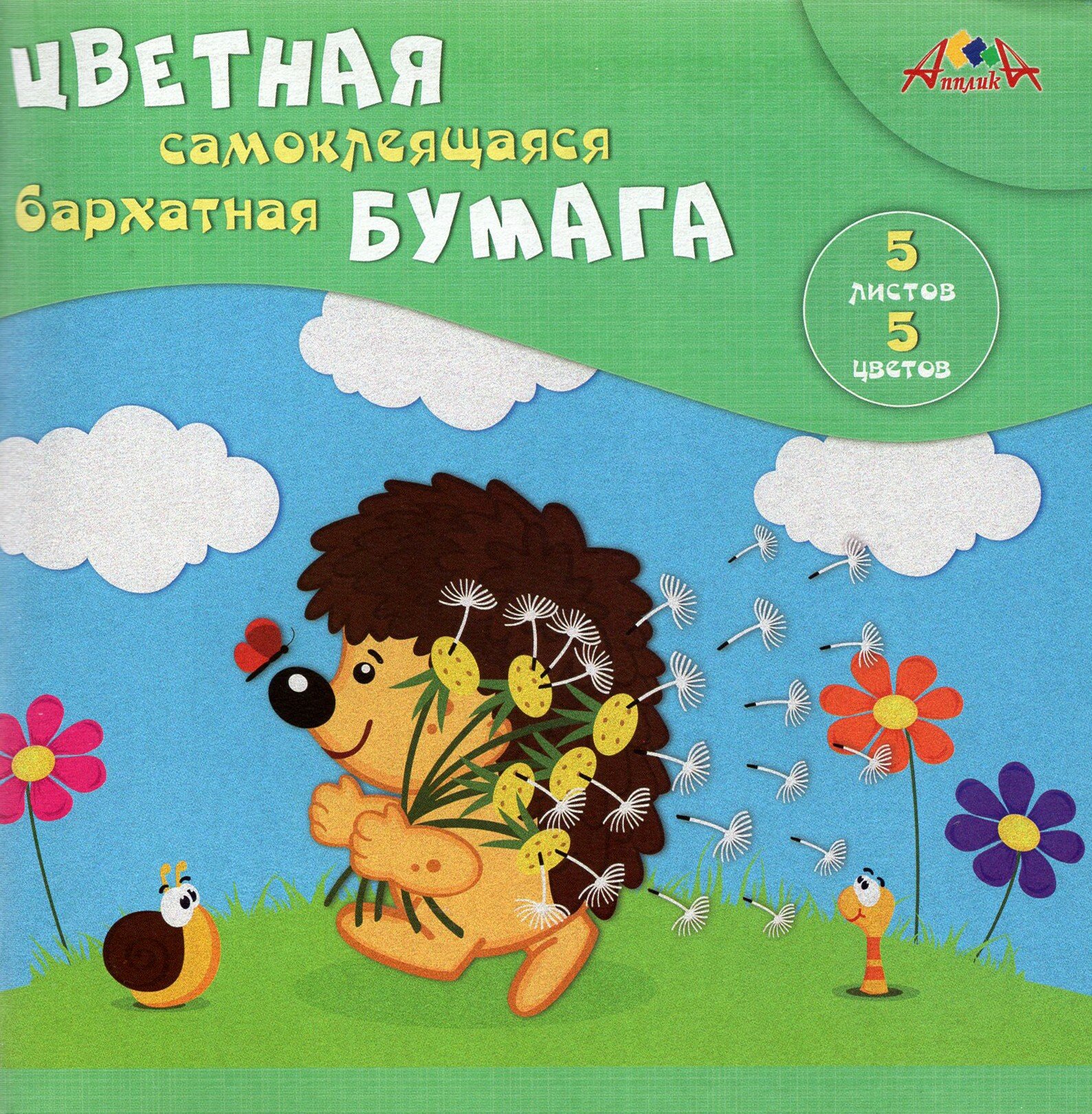 С0350-04 Цветная бумага бархатная самоклеющаяся А5 5 цв.'Ежик' АппликА