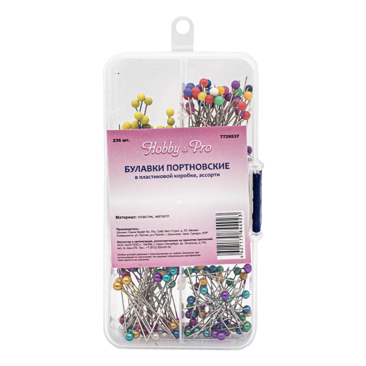 100404 Булавки портновские в пластиковой коробке ассорти 236шт Hobby&Pro