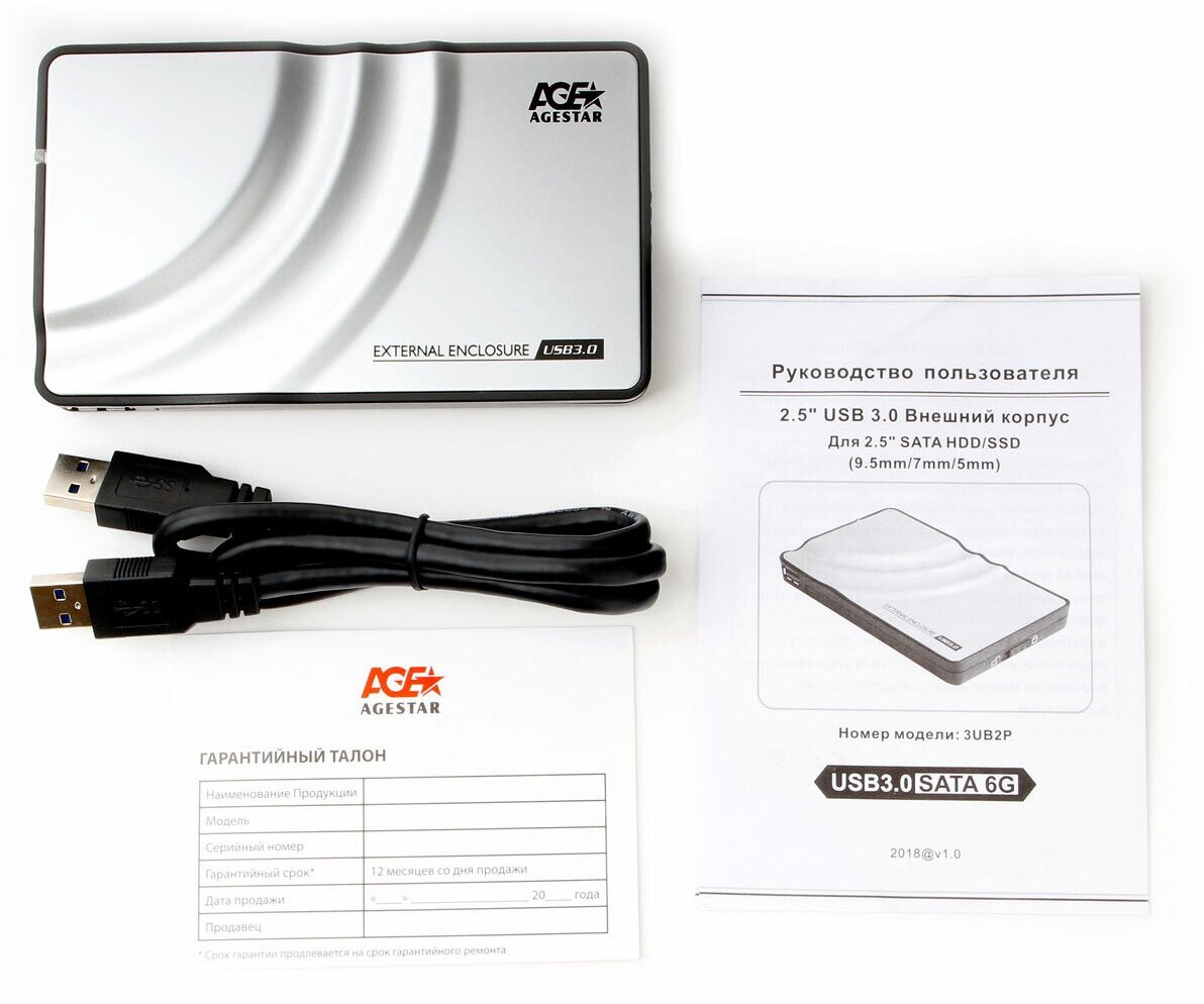 Элегантный и практичный USB 3.0 внешний корпус AgeStar 3UB2P позволяет обмениваться данными на сверхскоростях – до 5 Гбит/сек. Он подходит для накопителей HDD и SSD с интерфейсом SATA.Внешний корпус имеет безвинтовую конструкцию, благодаря которой можно быстро и легко подключить SATA накопители и наслаждаться новинкой. Скорость передачи данных при подключении к порту USB 3.0: до 5 Гбит/сек. (при подключении к порту USB 2.0: до 480 Мбит/сек.)Формат HDD/SSD: 2.5” SATAI/IIПоддержка ОС: Windows 2000/XP/Vista/7, MacOSПитание: постоянный ток напряжением 5В (по шине USB либо от внешнего адаптера, приобретается отдельно)Материал корпуса: алюминийЦвет: серебристый