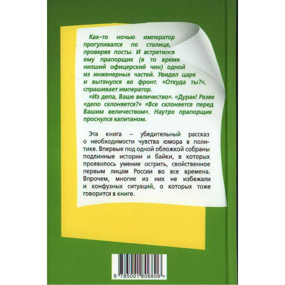 Эта книга - убедительный рассказ о необходимости чувства юмора в политике. Впервые под одной обложкой собраны подлинные истории и байки, в которых проявилось умение острить, свойственное первым лицам России во все времена. Впрочем, многие из них не избежали и конфузных ситуаций, о которых тоже говорится в книге.