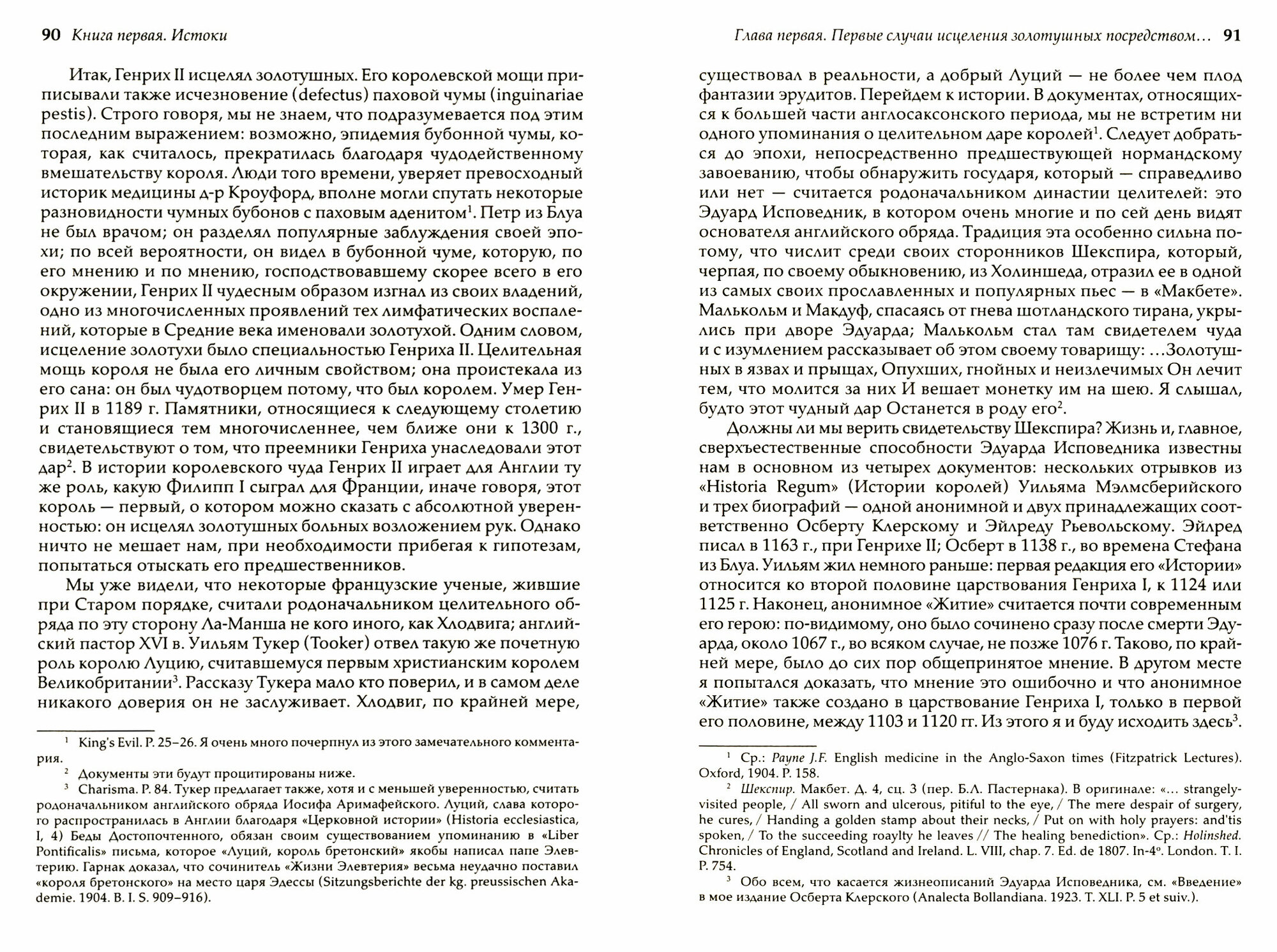 С другой стороны, давайте скажем прямо - работа очень скучная, поскольку посвящена малозначительной исторической проблеме. Как мне кажется, ее популярность во много обязана Ж. Ле Гоффу (кстати, его труды скучными не назовешь). И при всей скурпулезности исследования она не дает ответа на вопрос: насколько чудотворный обряд излечения золотухи влиял на обыденную жизнь французского и английского общества в разные исторические периоды.