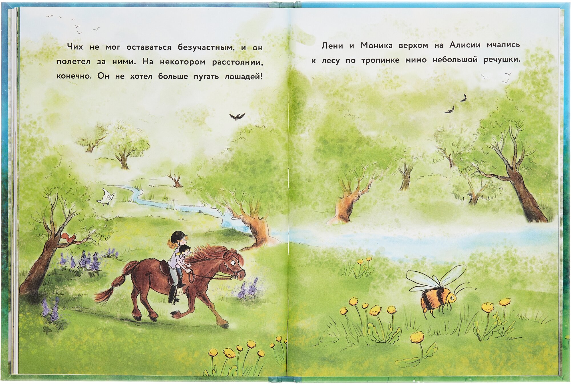 Вы знакомы с маленьким привидением по имени Чих? Если нет, то скорее знакомьтесь. Потому что это самое доброе и милое привидение на свете. Чихом его назвали, потому что, когда оно чихает, то становится заметным. И, поверьте, это очень серьезный недостаток. Тем более, что чихает Чих достаточно часто. Из-за этого музейный смотритель даже выгнал его из старого замка. Впрочем, Чих не расстроился и нашел новое место обитания в конюшне на ферме у Воробьиного ручья. Поселившись там, он вскоре увидел «маленьких людей» и «маленьких лошадок». Маленькие люди – это, как вы догадались, дети. А маленькие лошади – пони, за которыми ребята ухаживали на конюшне.