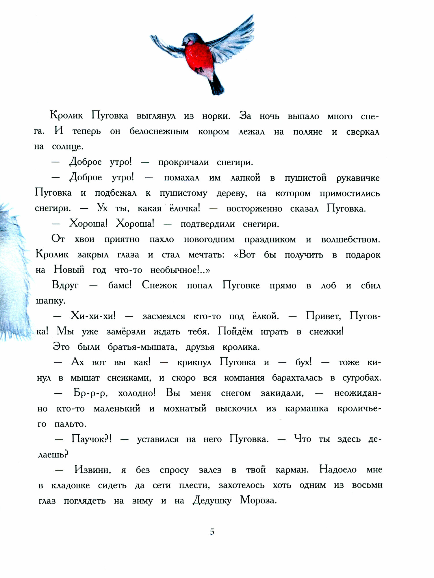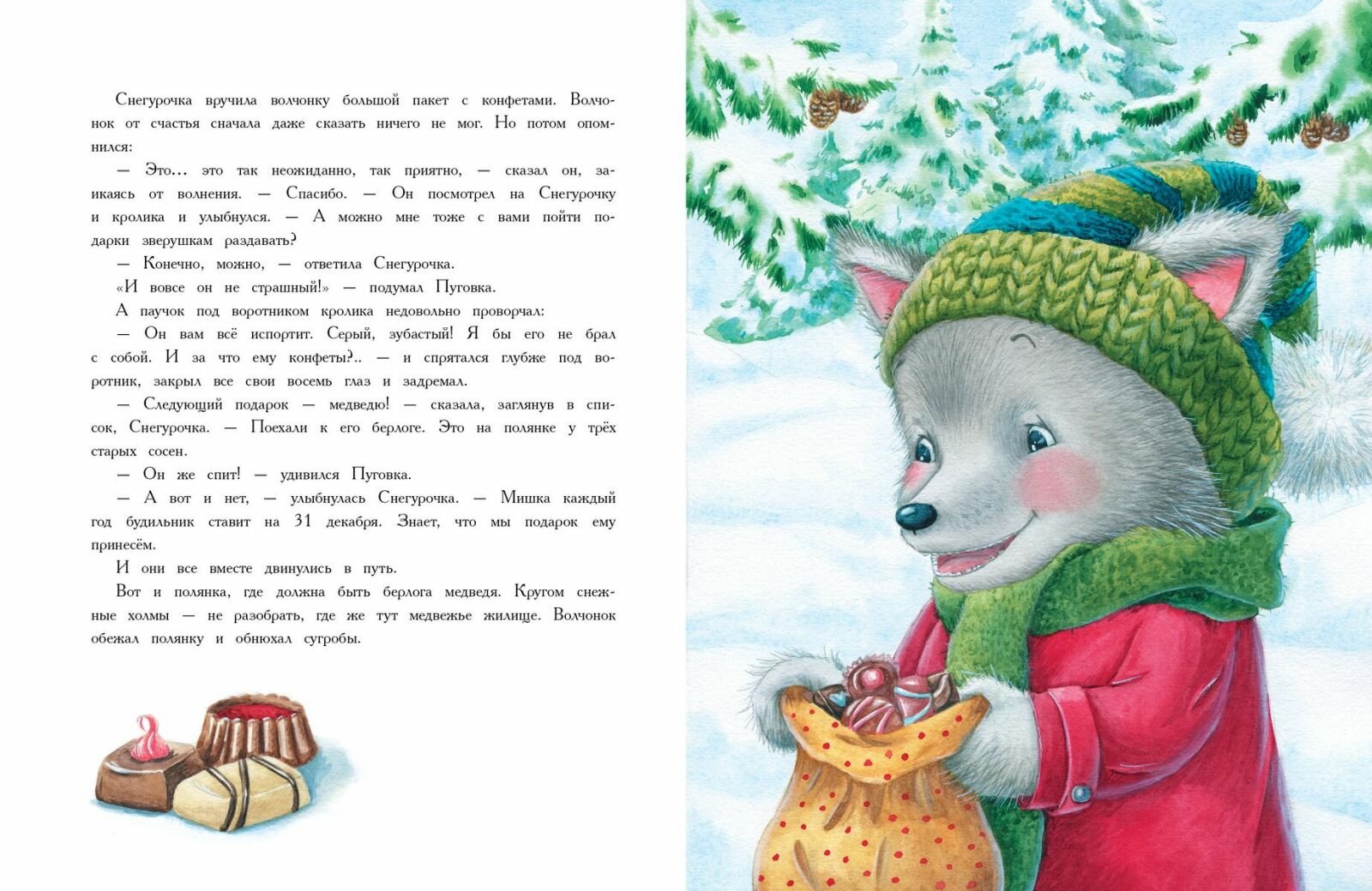 Под Новый год у Дедушки Мороза и Снегурочки очень много дел. Вот и решили они себе в помощники взять лесных зверюшек. Пока мышата и снегири с Дедом Морозом ёлку наряжали, кролик Пуговка со Снегурочкой отправились подарки развозить. Ох и нелёгкое это дело! Медведя нужно разбудить, к белкам в дупло забраться, через ледяной ручей к бобрам перейти, лисичку-плутовку догнать и чужие подарки отобрать... Всем доставили подарки Снегурочка и кролик. Опустели санки. Но где же подарок Пуговки? Неужели Дедушка Мороз забыл про него? Кролик ведь так мечтал о чём-то необычном...