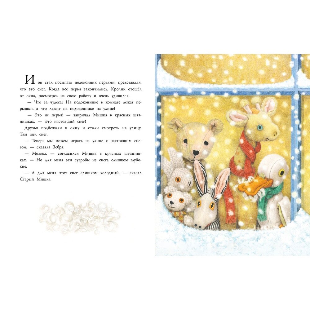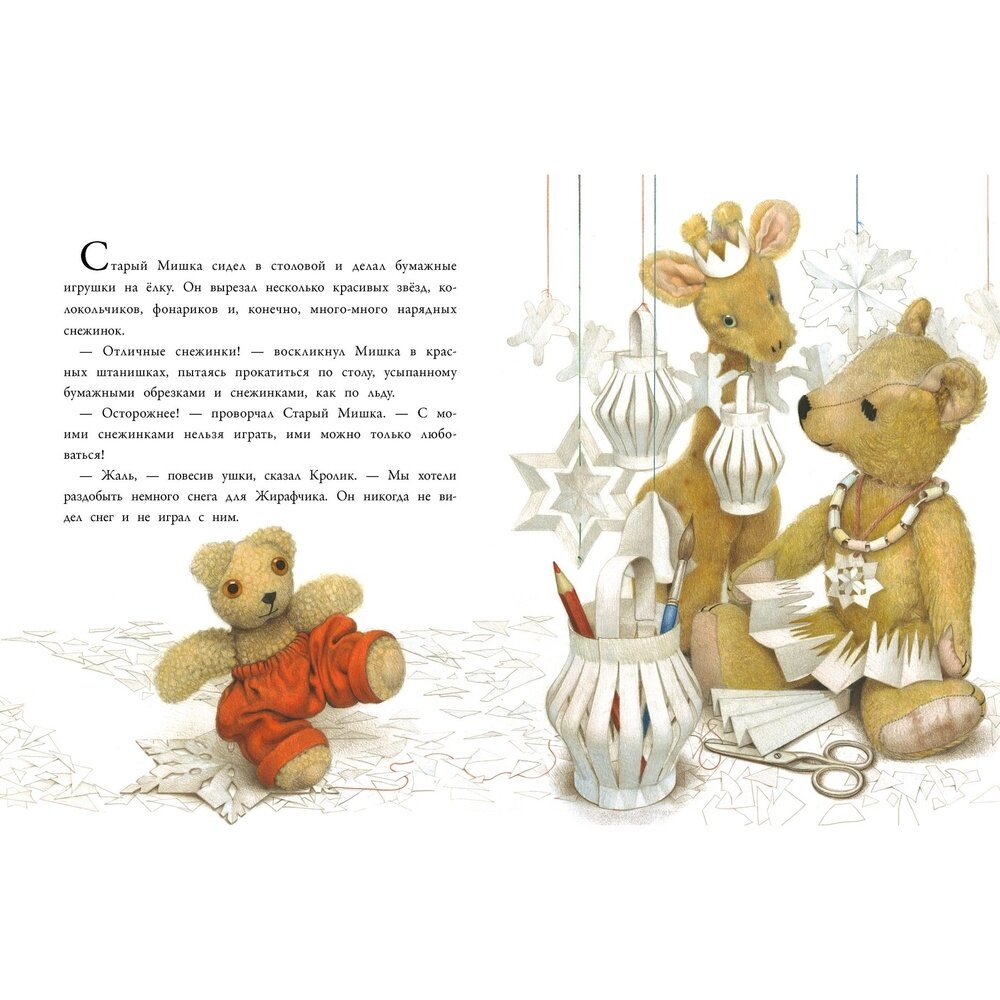 Когда английской художнице Джейн Хисси исполнилось три года, бабушка подарила ей плюшевого медвежонка. Он стал любимой игрушкой маленькой девочки. И когда Джейн выросла и решила написать детскую книгу, главным героем она выбрала этого медвежонка. К тому времени он уже действительно стал Старым Мишкой. Книги о Старом Мишке и его друзьях стали очень популярны во всём мире. Теперь их можете прочитать и вы. Наступила зима, но снега все не было и не было. Жирафчик никогда еще не видел снега. И тогда друзья-игрушки решили сами сделать для него снег. Он получился такой разный и такой необыкновенный! Какой же снег больше всего понравился Жирафчику?