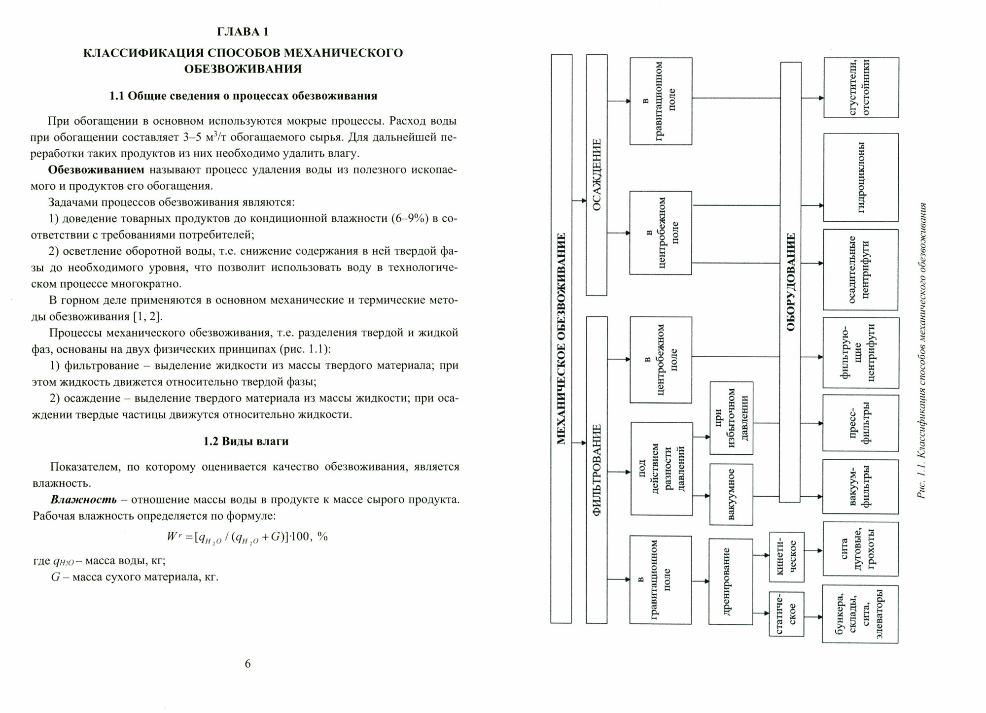 Приведены сведения о различных способах обезвоживания продуктов обогащения. Изложены теоретические основы процессов обезвоживания, описан принцип действия различных типов обезвоживающего оборудования. Даны сведения о водно-шламовых схемах обогатительных фабрик. Большое внимание уделено особенностям обезвоживания продуктов обогащения в центробежном поле, под действием избыточного давления и разрежения. Рассмотрены теоретические основы термического обезвоживания, приведены сведения о конструкциях сушильных установок.