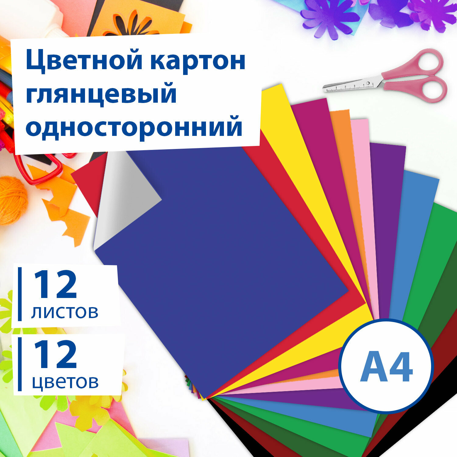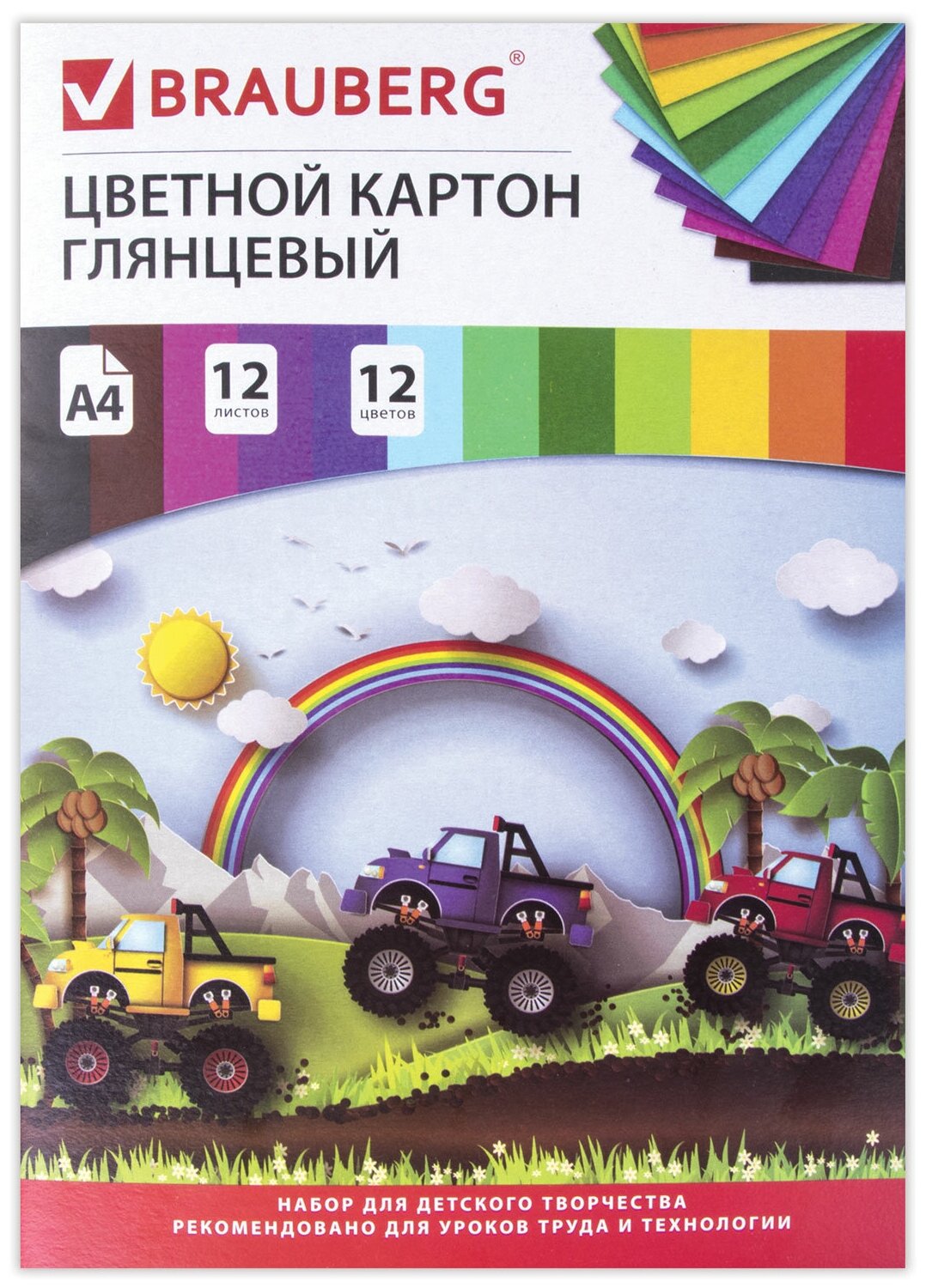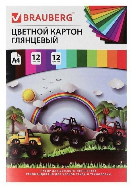 Картон цветной Brauberg Гонки А4 200*290мм 12 цветов 12 листов