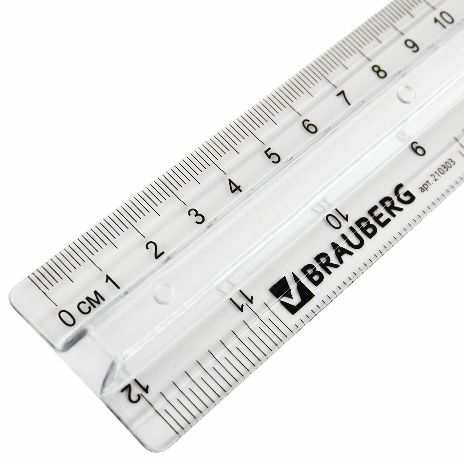 Линейка BRAUBERG предназначена для чертёжных и измерительных работ. Прозрачная линейка из пластика с с держателем. Длина шкалы составляет 30 см. Линейка обладает четкой разметкой, что делает ее удобной в использовании. Имеет двойную градацию шкалы (сантиметр, дюйм). Упакована в пластиковый пакет с европодвесом.