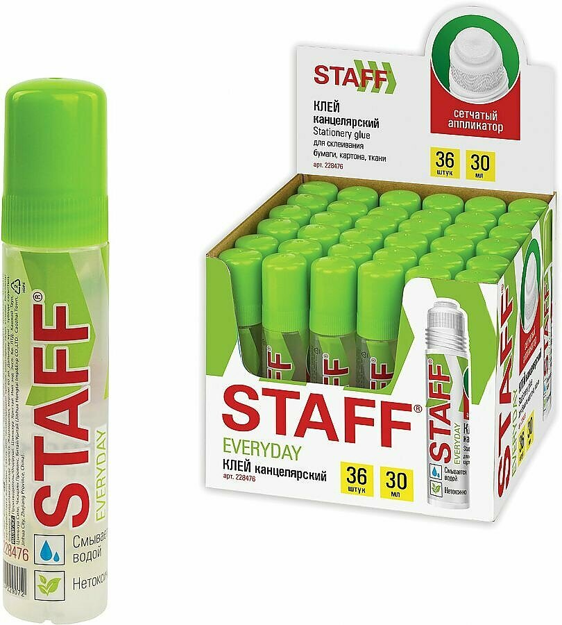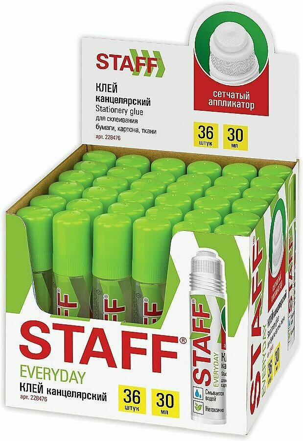 Клей канцелярский Staff предназначен для склеивания бумаги, картона и ткани.