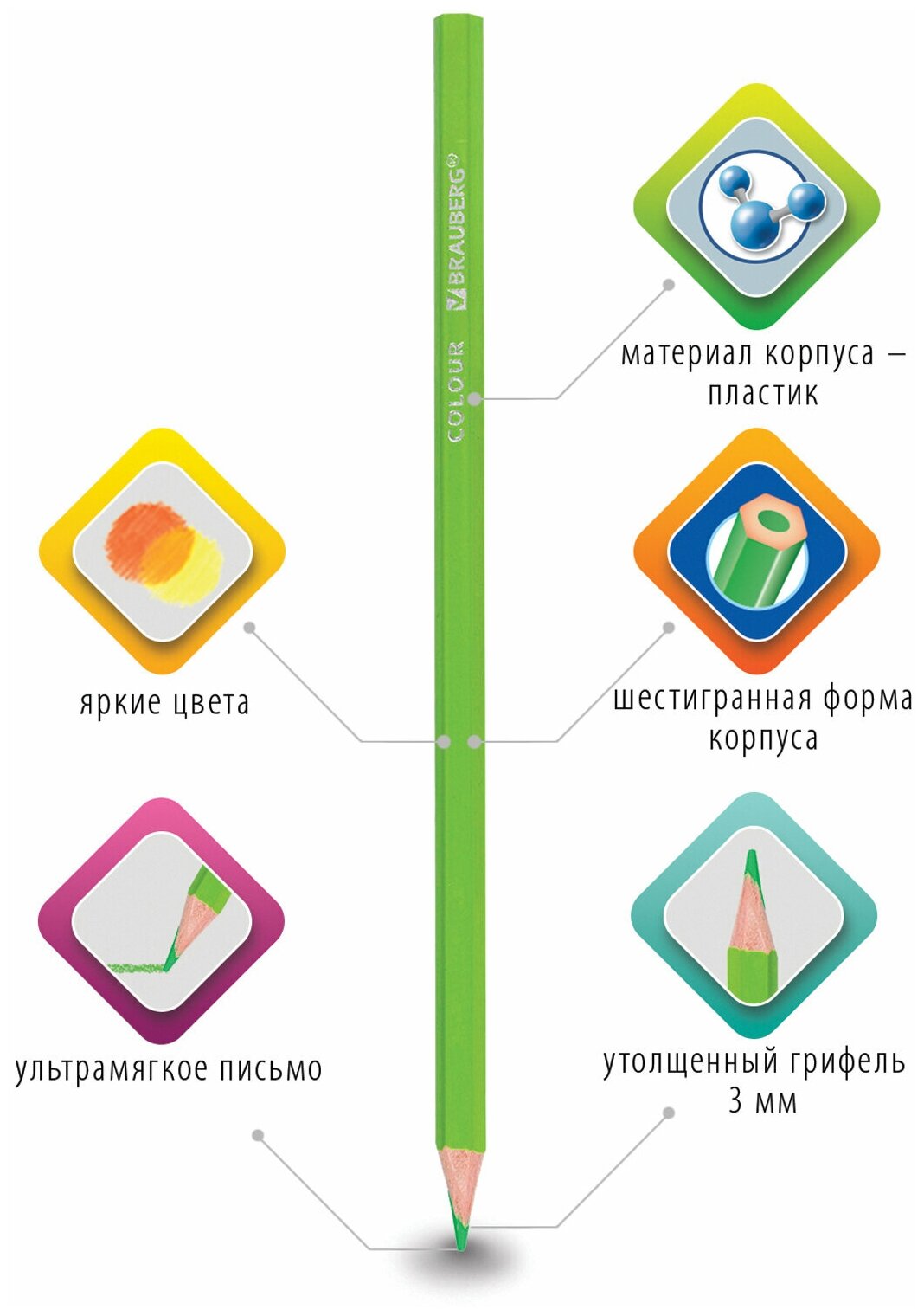 Карандаши цветные Brauberg Premium 6 цветов
