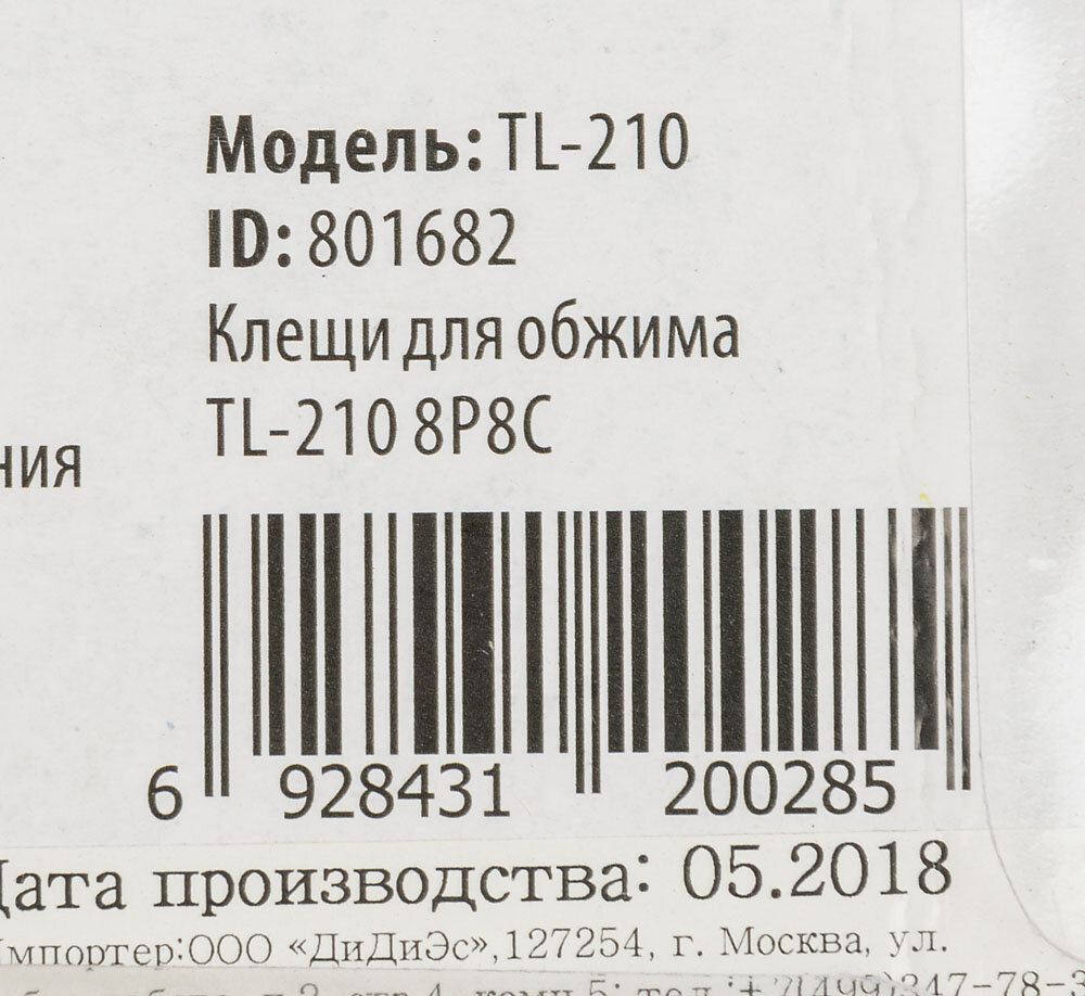 | Тип инструмента | Инструмент обжимной для RJ-45 |