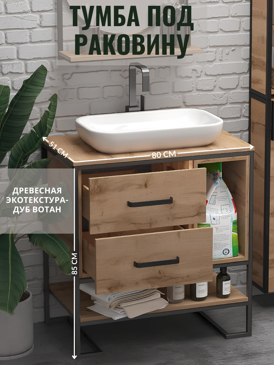 | СПЕЦ ГРУППА - Мебель для ванной | Тумбы под раковину шириной 80 см, Тумбы под раковину с двумя ящиками |