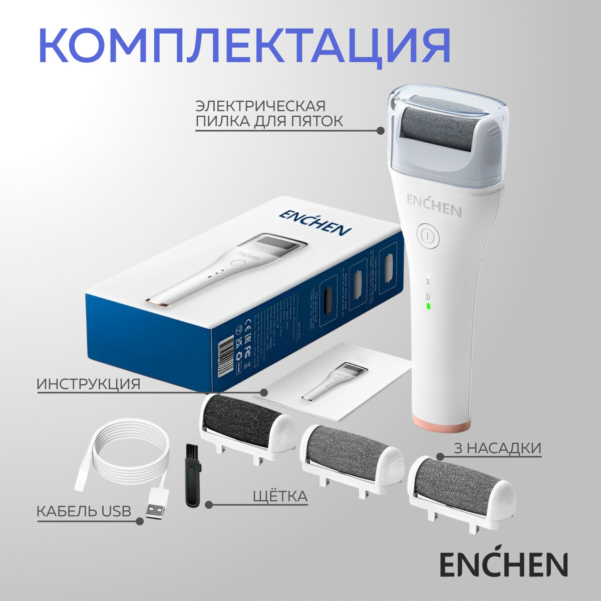 | Комплектация | Электрическая пилка 1 шт., Сменные ролики 2 шт., Зарядный кабель 1 шт., Руководство пользователя 1 шт. |