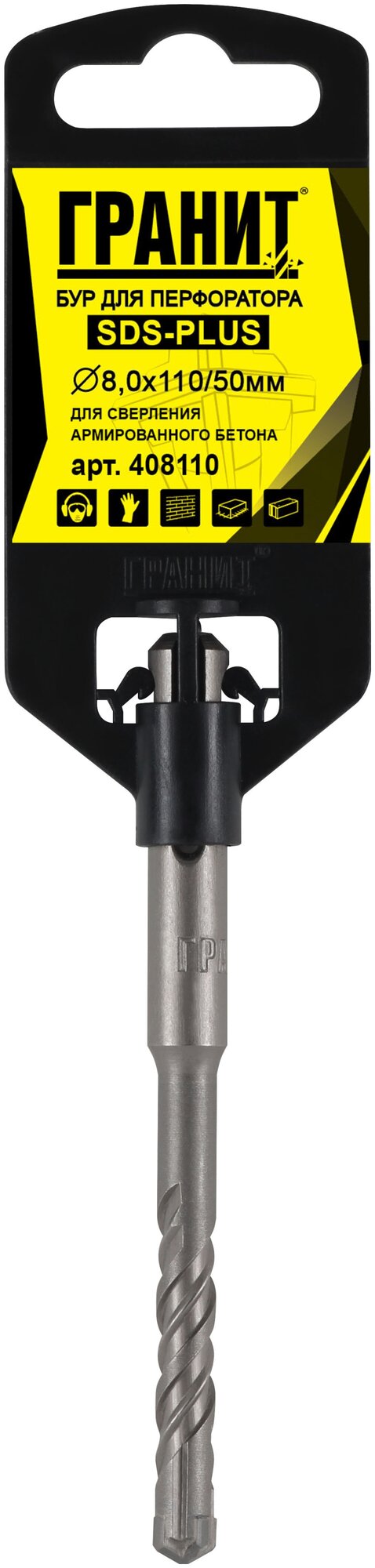 Бур Гранит предназначен для перфораторов с системой крепления SDS-plus. Применяется для сверления глухих и сквозных отверстий в каменной кладке, бетоне и железобетоне. Форма наконечника с 4 кромками предотвращает заклинивание и поломку, обеспечивая высокие результаты. Наконечник с углом поворота и 4-канальная конструкция обеспечивают повышенное удаление пыли и шлама для быстрого бурения с пониженным износом.