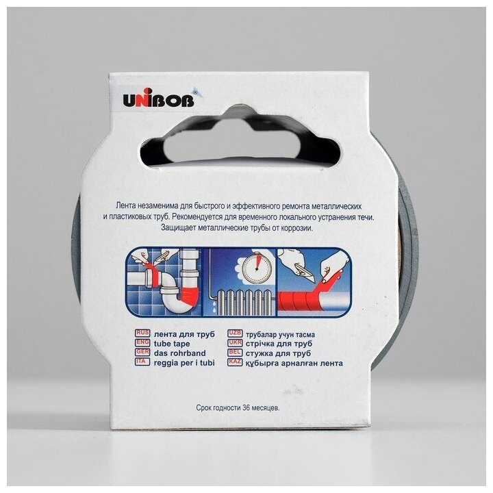 лента клейкая д/труб unibob 48мм х 10м серая (пвх)46745