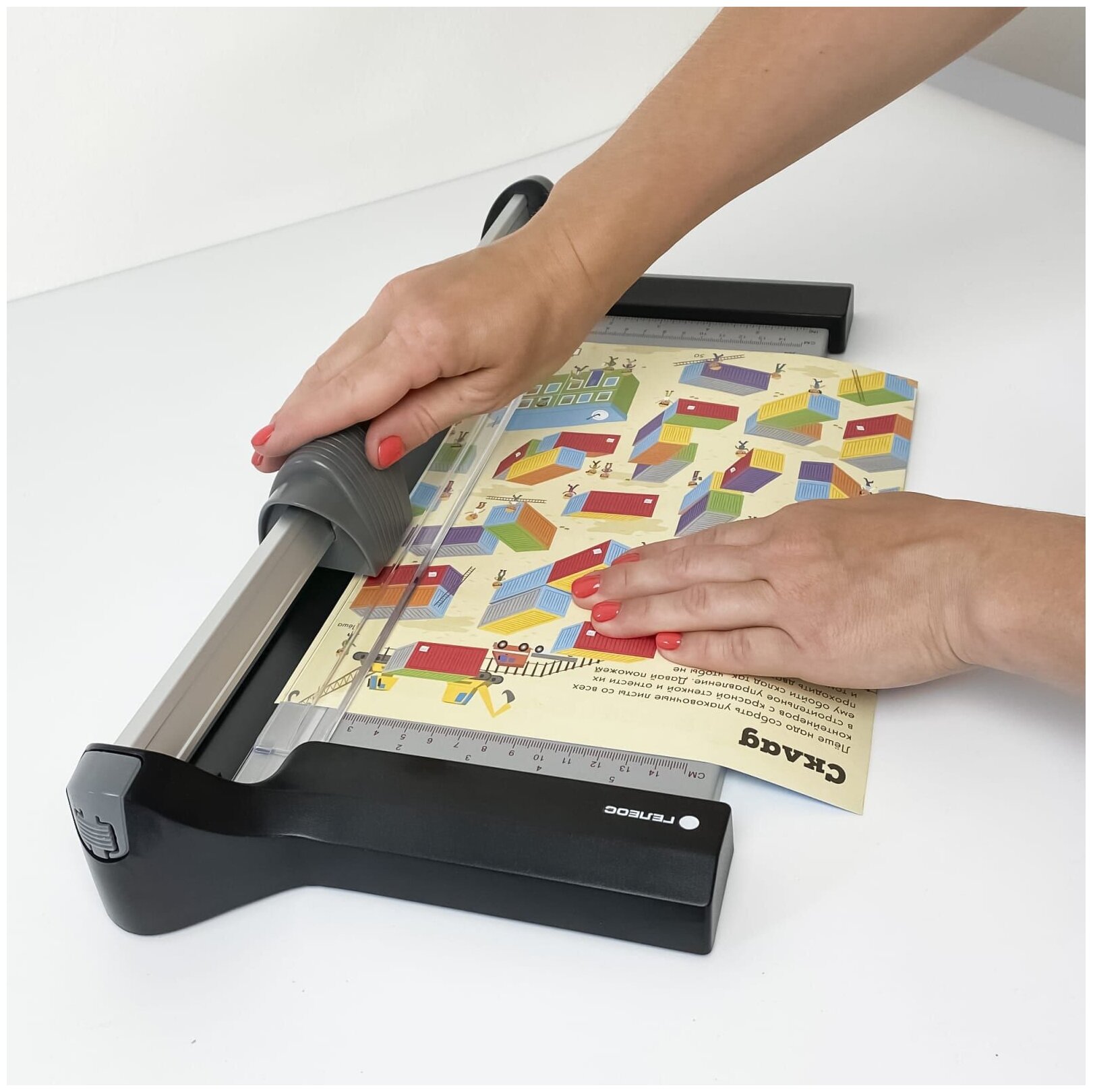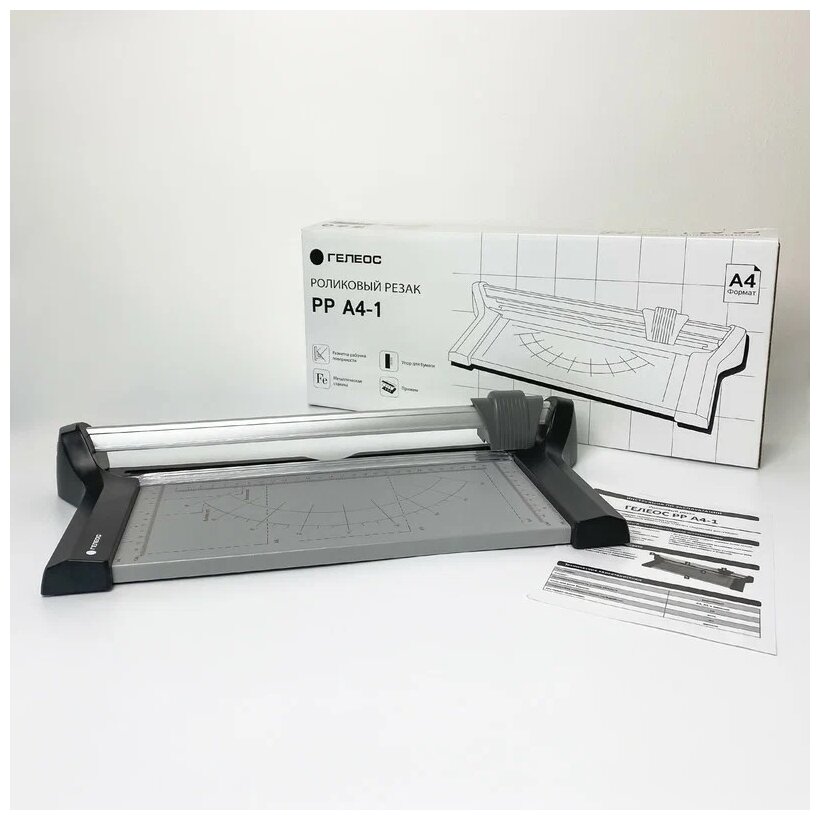 Роликовый резак ГЕЛЕОС РР А4-1 для резки бумаги формата А4. Подходит для резки ламинированной бумаги или открыток, тонкого картона или бумаги для скрапбукинга, фотобумаги или цветной бумаги и т.д. Будет хорошим помощником в офисе, фотостудии, учебных заведениях, а также будет незаменим и дома для хобби и творчества.