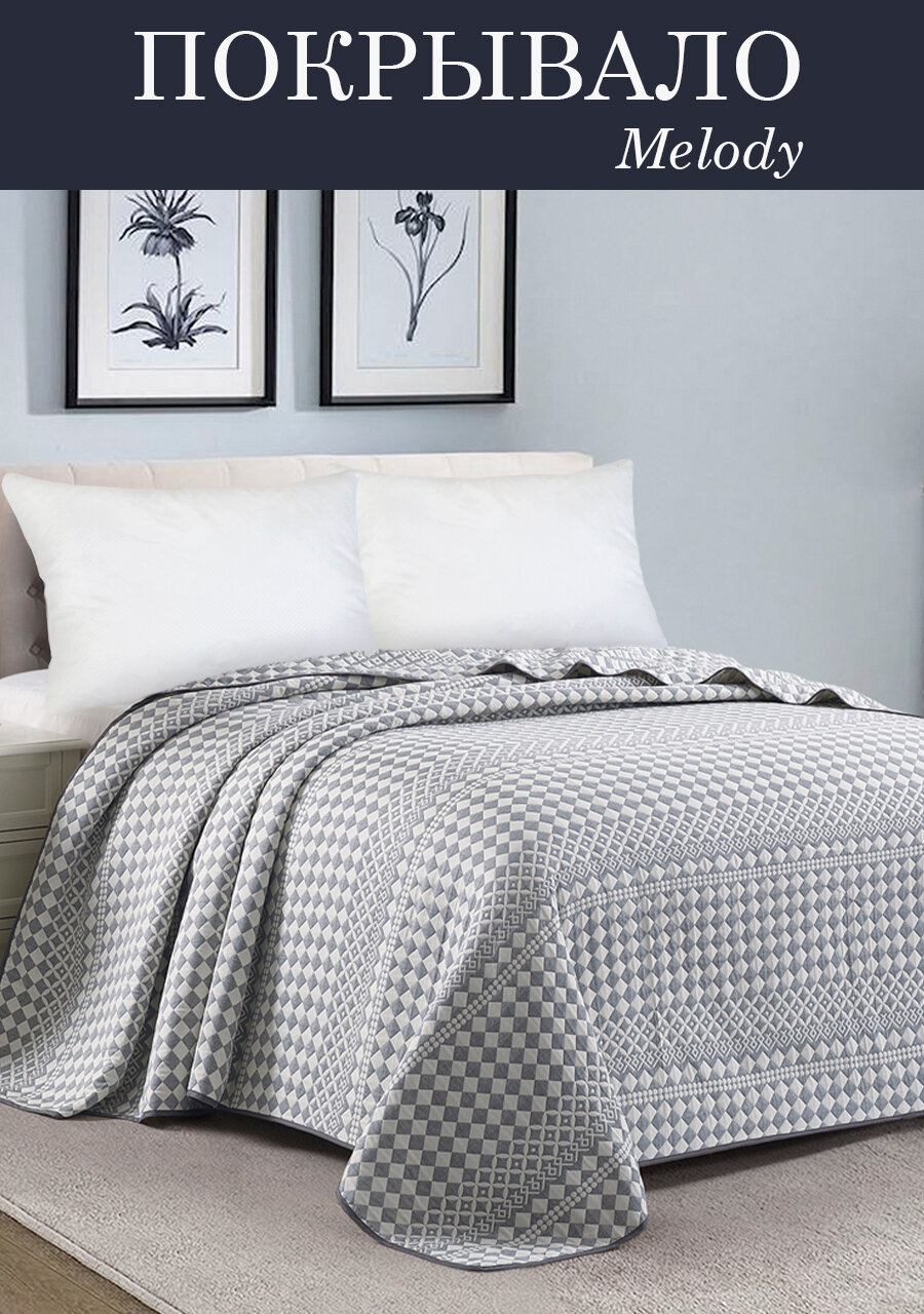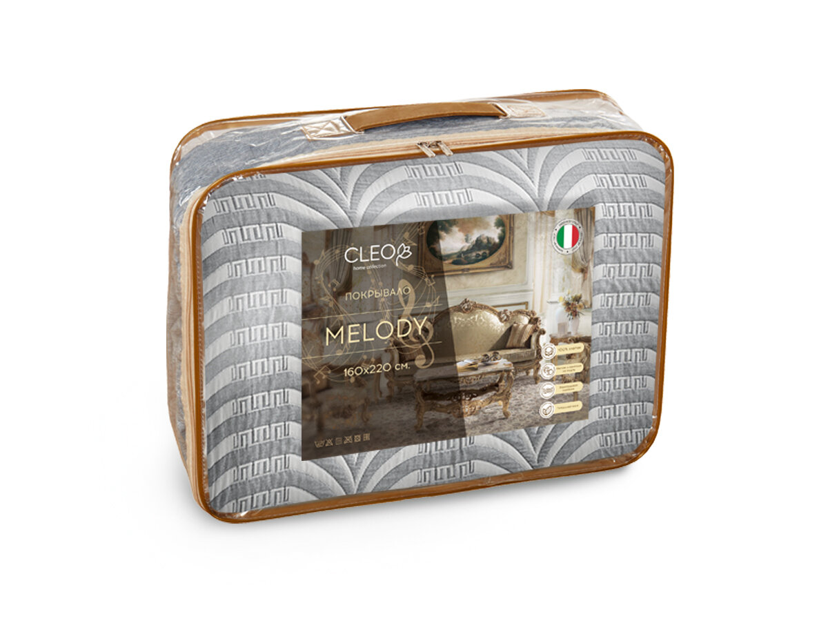 Стеганное покрывало на кровать для вашей спальни. Изделие выполнено из 100% хлопковой ткани жаккард, отличительной особенностью данного материала является прочность и долговечность. Внутренний наполнитель покрывала - синтепон (полиэфирное волокно 100%). Плотность покрывала 120 гр/м2. Изделие можно использовать, как легкое одеяло-покрывало оно легко стирается в стиральной машине в режиме «деликатной стирки», а после высыхания принимает первоначальную форму. Покрывало торговой марки Cleo. Вся продукция производится в России в городе Иваново, вот уже более чем 20 лет, имеет сертификацию качества «Гост 31307-2005», а также зарегистрирована в государственной системе маркировки и прослеживания «Честный знак».