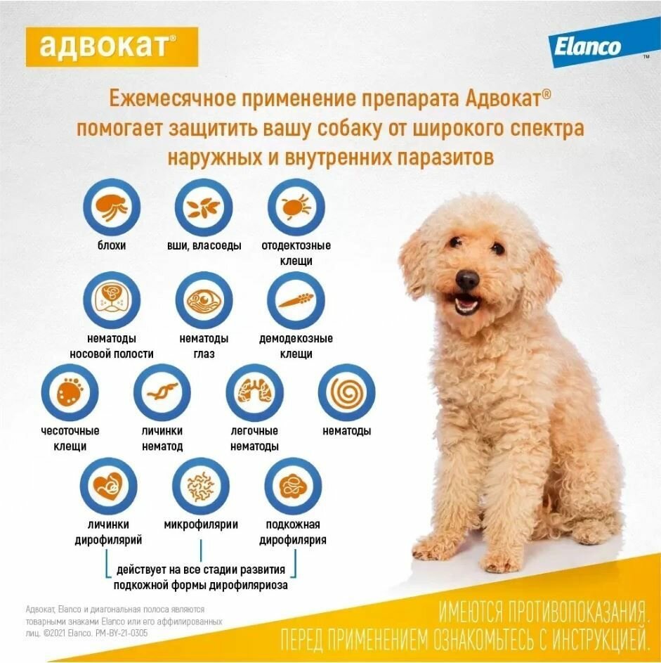 Капли на холку Адвокат® - комплексный препарат немецкого производителя Bayer, помогающий вам защитить собаку от широкого спектра внешних и внутренних паразитов.
