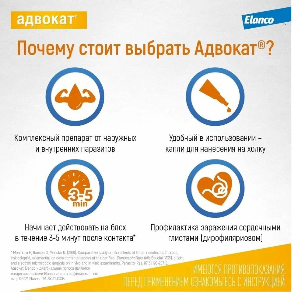 Показания: Адвокат® – комплексный препарат широкого спектра, действующий на: