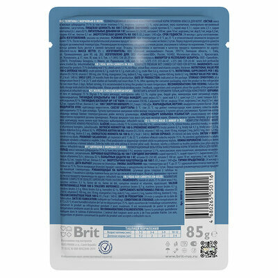 Модель: Корм влажный Brit Premium телятина с морковью в желе для котят 85 г