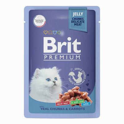 Влажный корм для котят Brit Premium Пауч Телятина с Морковью в желе 0085 кг Корм влажный Brit Premium телятина с морковью в желе для котят 85 г