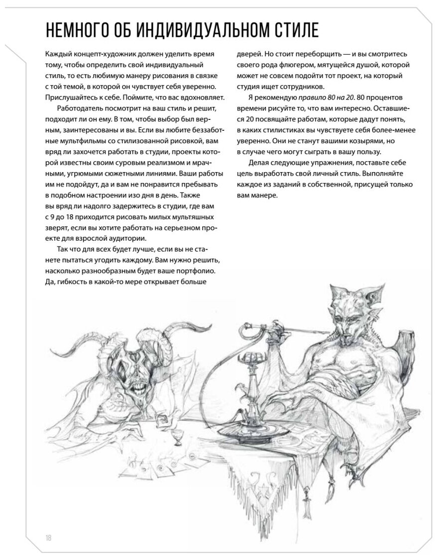 На этот раз я уже хорошо знакома с компанией Smirnov school, которая рекомендует эту книгу. Прошлая книга - "Основы цифрового рисунка в photoshop" взорвала мозг изобилием информации от разных профессиональных художников, которая грамотно затронула как и основы пользования приложением, так и уже созданием арта и доведением до идеала конечного результата. Сама книга, ее физическое воплощение, сделана очень грамотно и профессионально. С самого начала вас уже встречают бомбические арты. И в новой книге - "Дизайн существ и персонажей" так же. Однако, основы уже написаны, поэтому автор этой книги, Марк Таро Холмс, поработал над материалом, который поможет ученикам создать свой собственный стиль, добавить собственные фишки, отличиться, выделиться и все это направлено на создание портфолио. Чтобы быть профессионалом, нужно быть уникальным. Автор книги предлагает некий "скелет" для вашего итогового уникального портфолио, которое вы будете создавать по ходу чтения, обучения и выполнения заданий, где нужно будет проявляться по особенному. Перед этим он предлагает обучение по разработке персонажей, каждый новый этап обучения будет сложнее, он накладывается на предыдущий, а на исходе вы получаете интересных, качественных и исключительных персонажей для вашего портфолио.