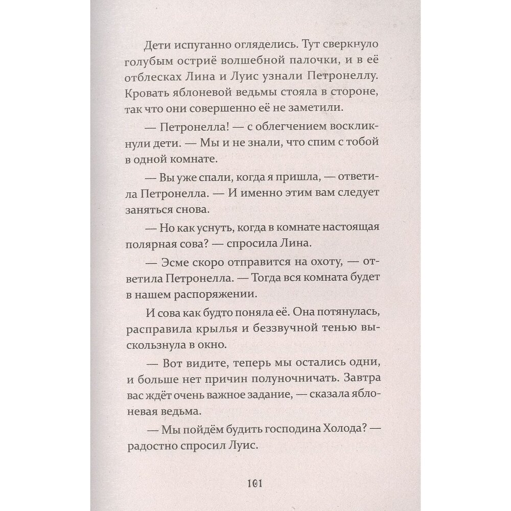 Долгожданный выход новой книги про Петронеллу, - ведьмочку, которая завоевала много сердец. За 8 книг, наполненных лучшими чувствами, добром, отважностью, помощью и справедливостью, Петронелла набрала достаточно большую аудиторию. В ее книгах нет ярких иллюстраций, их вообще практически нет, зато всегда есть волшебство, уже родные близнецы Лина и Луис - главные друзьями ведьмы, в последних книгах присутствует сестры Петронеллы, и, конечно же, общий враг. В этой книге Дух Зимы проспал свой выход и теперь без зимы в природе и в волшебном лесу все пойдет наперекосяк. Петронелла и ее сестры, - ведьмы погоды, не могут этого допустить, но когда они отправляются на и без того опасное задание, на сад нападают. Сабина Штэдинг не раз ставит наших героев в опасные ситуации и ставит под угрозу сад, в котором уже так много друзей и приятных воспоминаний, но без этих опасностей не было бы прекрасных историй. Все они про помощь и справедливость, про верных и отважных друзей, которые будут стоять друг за друга, про правду и про волшебство. Такие книги прививают моральные принципы, Петронелла действительно является прекрасным примером для подражания, а ее роль ведьмочки и в целом волшебный сад помогает ребенку развить воображение, а потому и картинки не нужны.