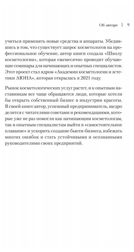 Издание адресовано специалистам, работающим в индустрии красоты, и будет полезно всем, кого интересует опыт создания и развития собственного бьюти-предприятия.