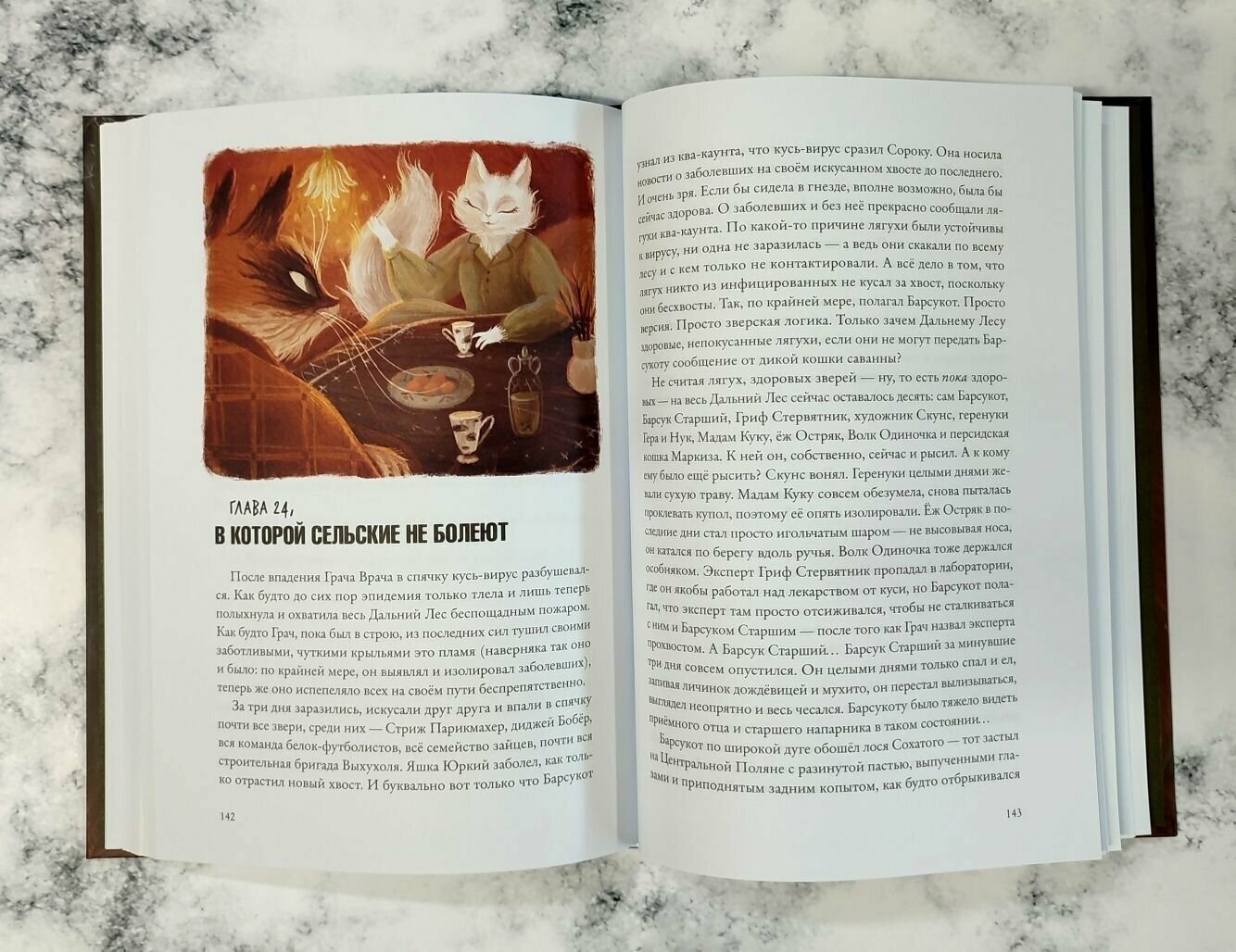 В Дальнем Лесу — эпидемия нового, неизученного кусь-вируса. Грач Врач безуспешно бьётся за здоровье зверей: лекарства от вируса нет, прогноз для заболевших печален, а меры предосторожности вроде подвязывания хвостов не работают. Всё указывает на то, что вирус — искусственного происхождения. Кто же он, злой гений, запустивший зверскую эпидемию? От ответа на этот вопрос зависят жизни животных: тот, кто создал болезнь, должен знать и секрет исцеления. Барсуки Полиции преследуют преступника, рискуя собственной шкурой. А кусь-вирус преследует их самих — как чудовище Хвостоед из детской считалки.