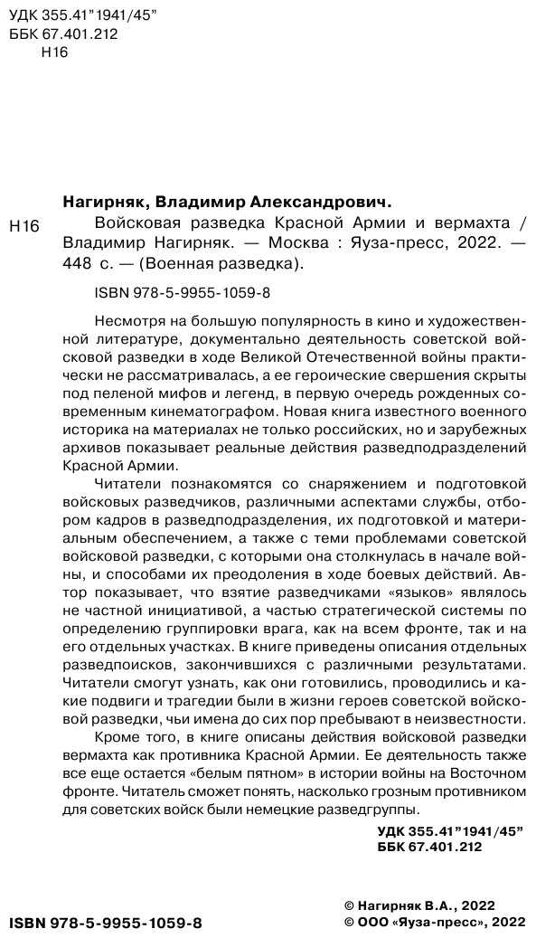 Войсковая разведка Красной Армии и вермахта (Владимир Александрович Нагирняк); Яуза-пресс ООО, 2022
