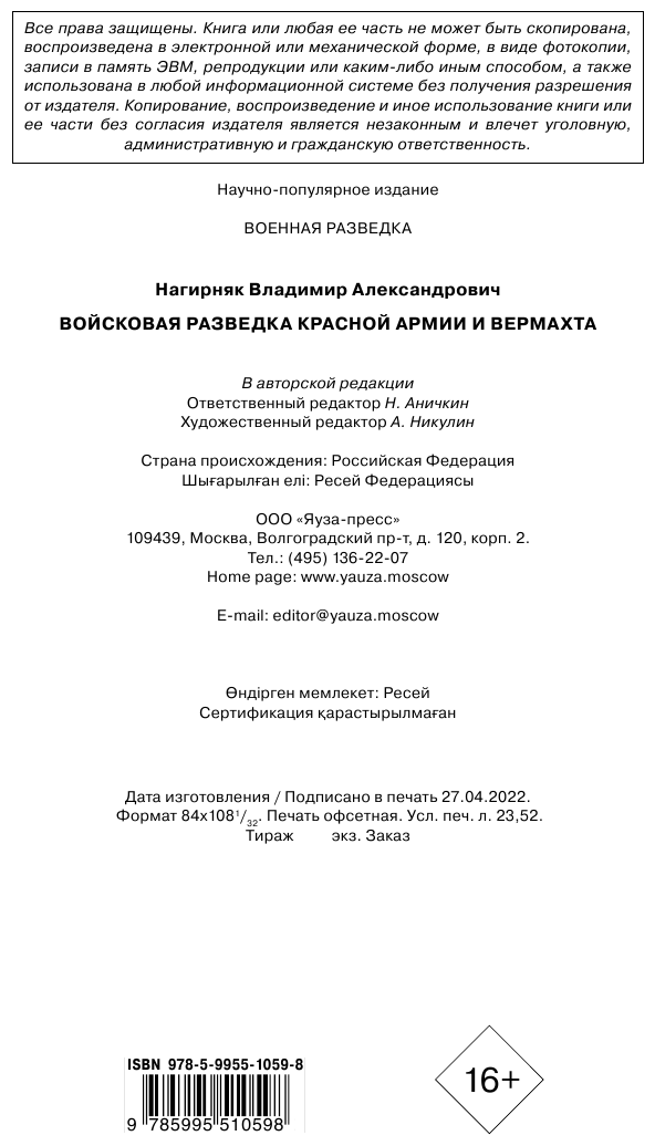 Сервис сравнения цен СкидкаГИД предлагает сравнить цены на товар «Книга: Войсковая разведка Красной Армии и вермахта (Владимир Александрович Нагирняк); Яуза-пресс ООО, 2022»