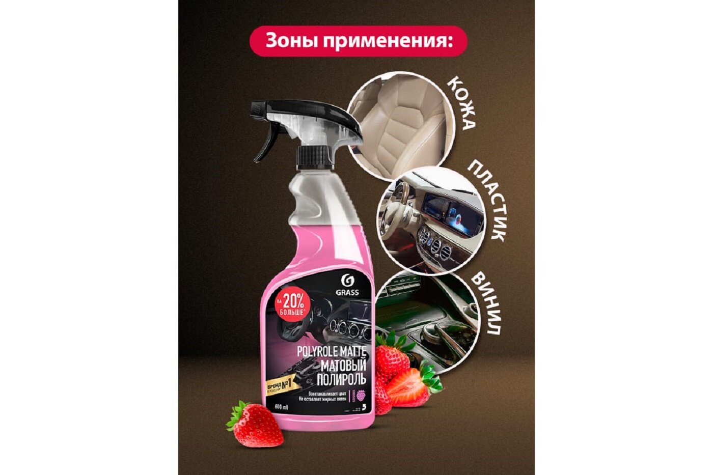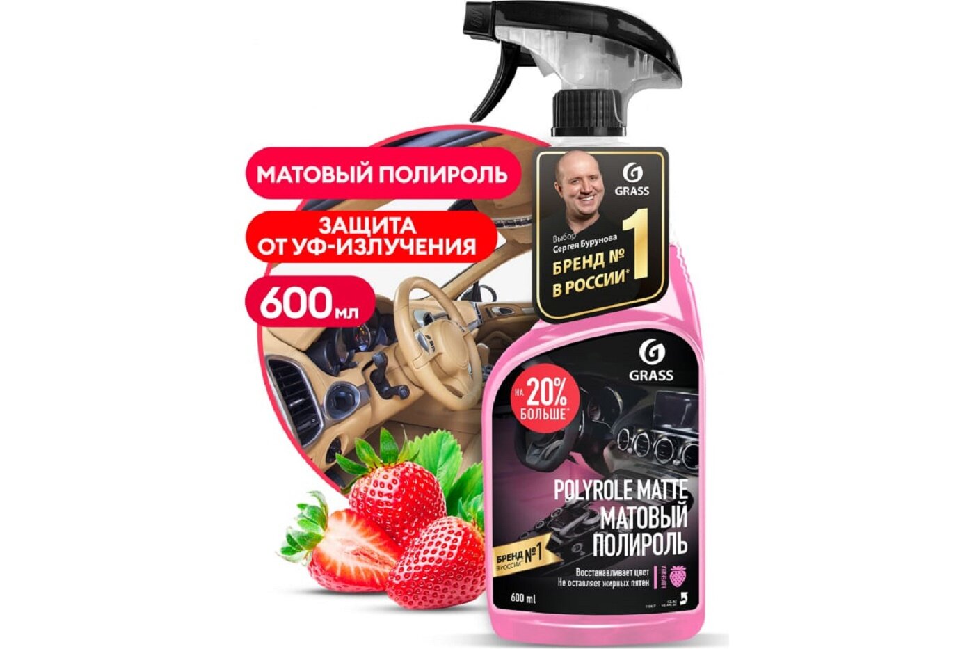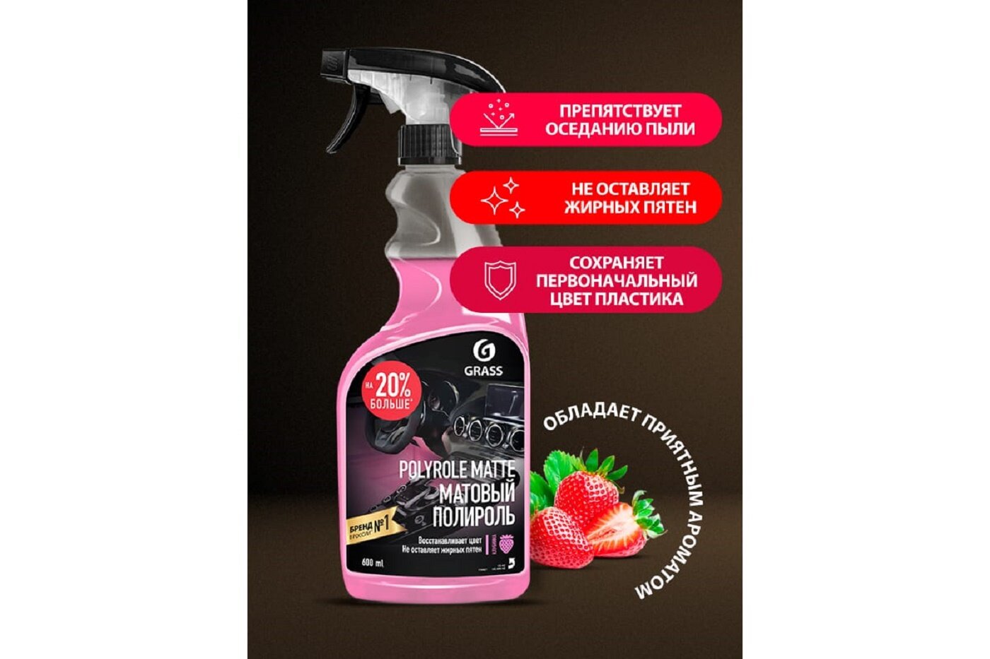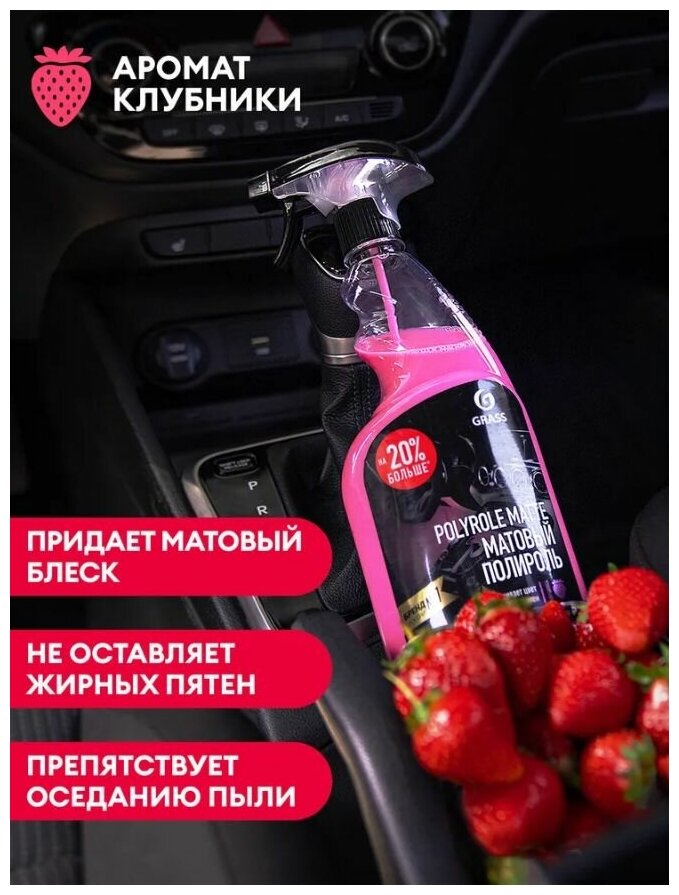 Полироль-очиститель Grass Polyrole Matte для пластика клубника 600мл