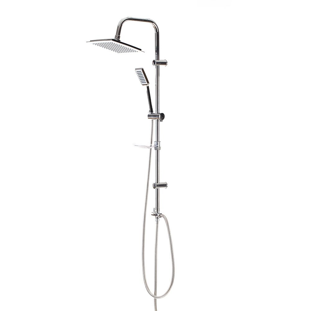 Душевая система - стойка с двумя квадратными лейками, штанга 22*0.5мм из нержавеющей стали SUS304, душевой шланг 1,5м двойной замок, шланг подключения к смесителю 50 см, хромированный цинковый поворотный дивертор, хромированная мыльница, крепления цинковые, крепеж в комплекте (2дюбеля + 2 самореза).
