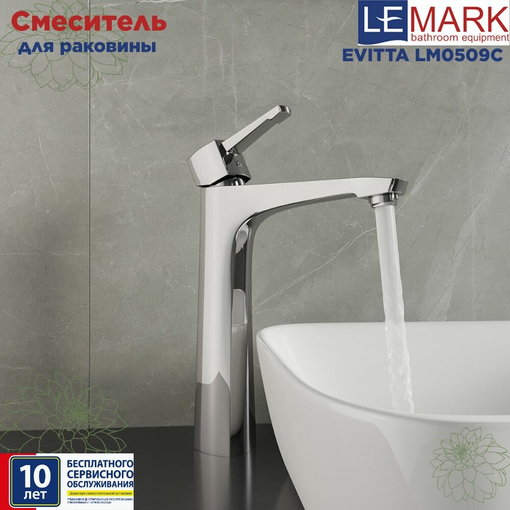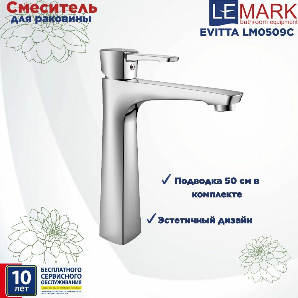 Смеситель для раковины Lemark Evitta LM0509C. Серия смесителей EVITTA. Аэратор с изменяемым углом подачи воды. Керамический картридж 35 мм. Гибкая подводка 1/2 50 см. Присоединительная группа для настольного крепления. Металлическая рукоятка.