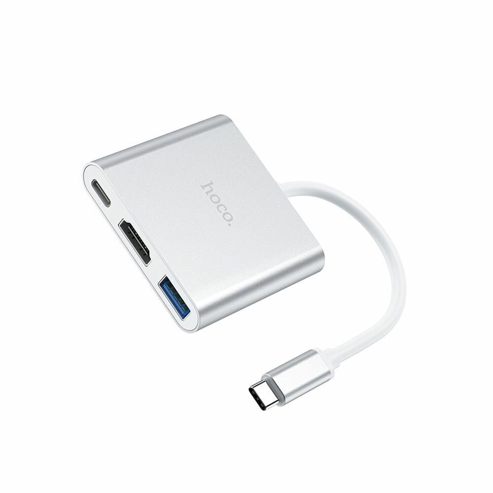 6931474725790 Переходник хаб HOCO HB14 Easy use Type-C adapter (Type-C to USB3.0+HDMI+PD), серебр.