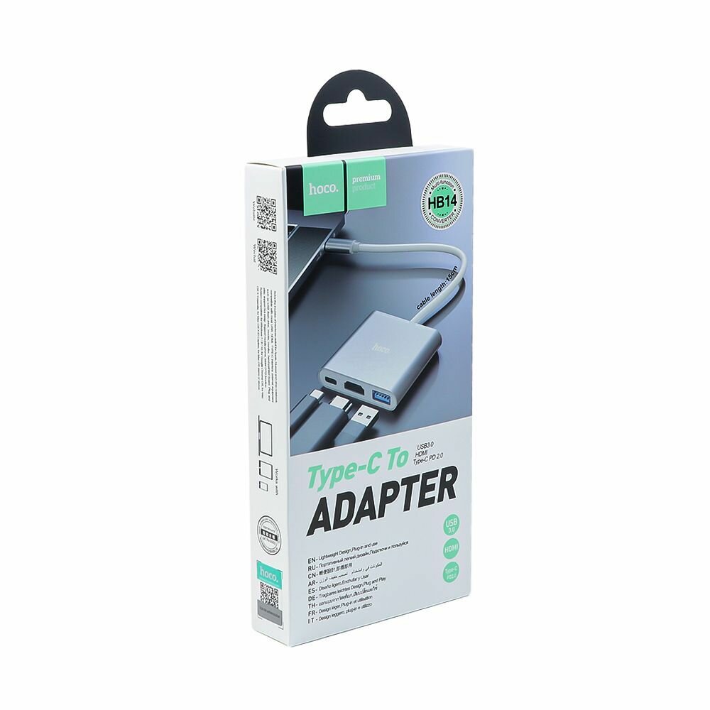 - Type C Xaб конвертер Hoco HB14 Type C на USB3 0+HDMI+Type C