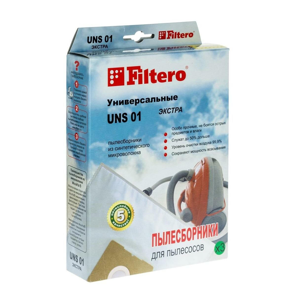 Мешки-пылесборник Filtero UNS01(универсальные) экстра 3 штуки. пылесборник Filtero UNS01 экстра пригодны для установки в любые пылесосы, конструкция которых допускает использование одноразовых пылесборников.