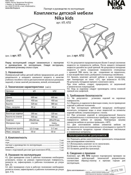 | Тип товара | Детские столы и стулья |