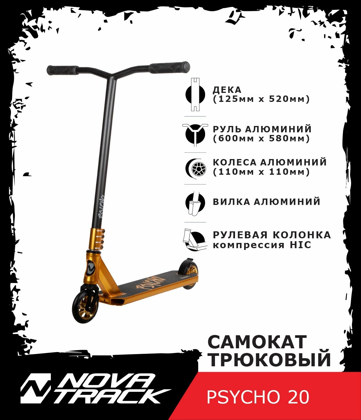 Novatrack Psycho BL - это качественный трюковой самокат разработанный для детей и подростков возрастом от 8 лет. Максимальная нагрузка: до 100 кг. Определение размера: стоя на самокате, руль должен находиться на уровне пупка. Технические особенности модели: