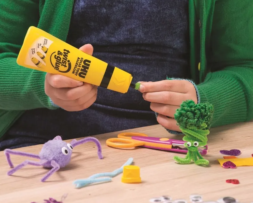 Универсальный прозрачный клей UHU TWIST&GLUE; для дома, офиса, творческих работ, изготовления архитектурных макетов из бумаги и картона и т.д. Уникальная головка-аппликатор позволяет наносить клей точками, линиями и широкими полосами.