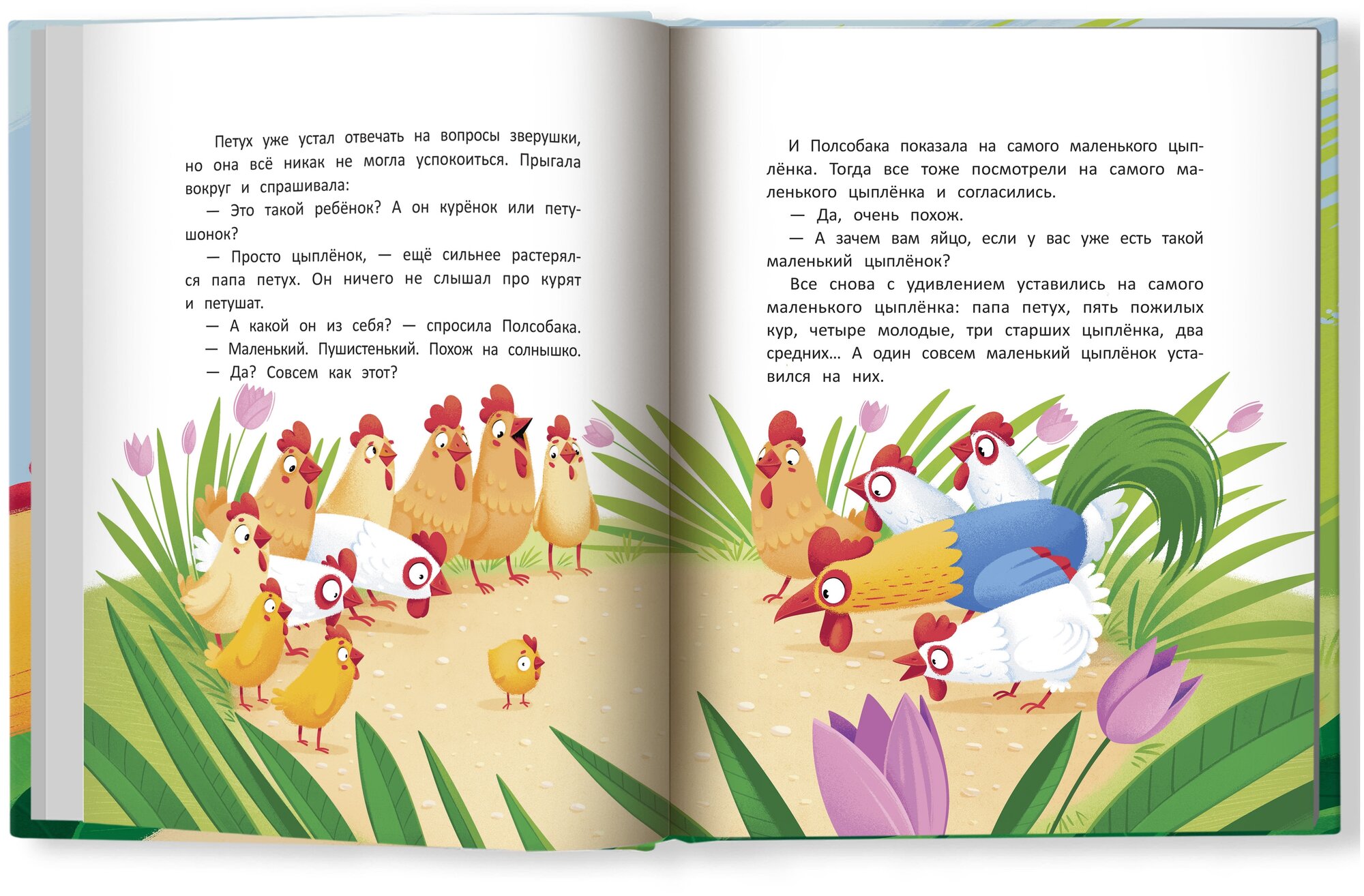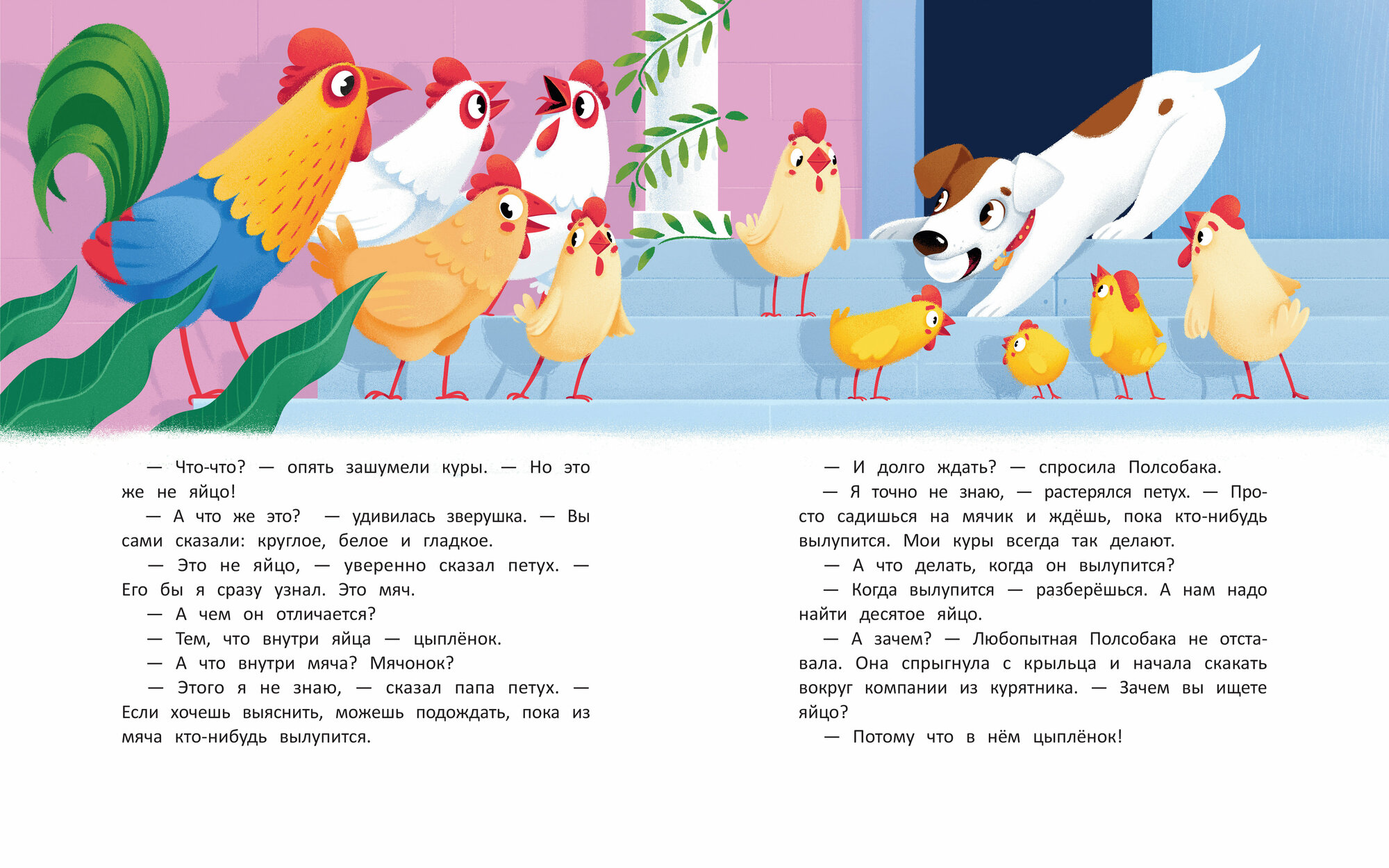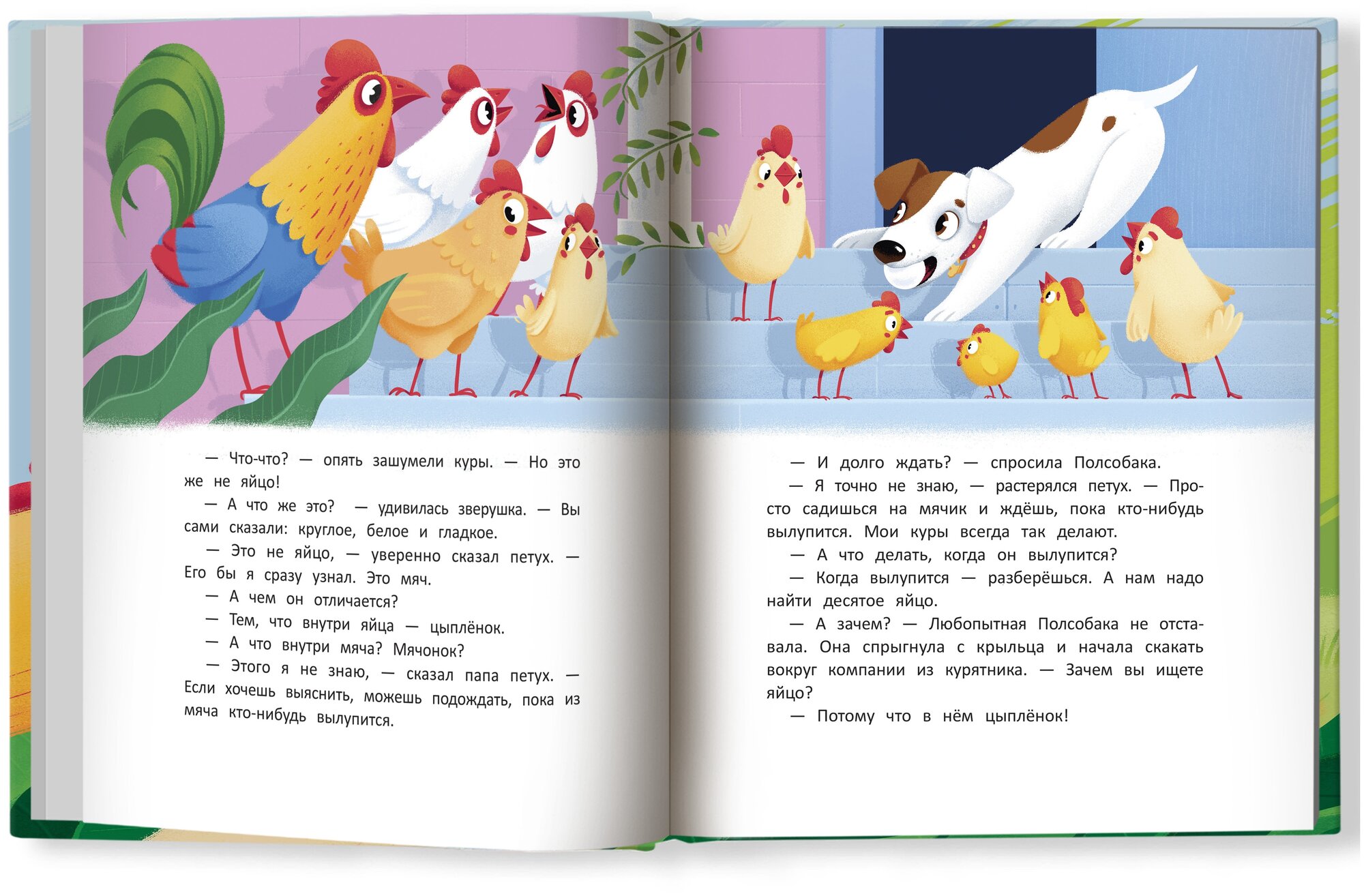 Однажды утром мама курица обнаруживает пропажу: исчезло десятое яйцо! Папа петух отправляется расследовать кражу в компании пяти пожилых кур, четырёх молодых, трёх старших цыплят, двух средних и одного совсем маленького. Куда приведёт их поиск?