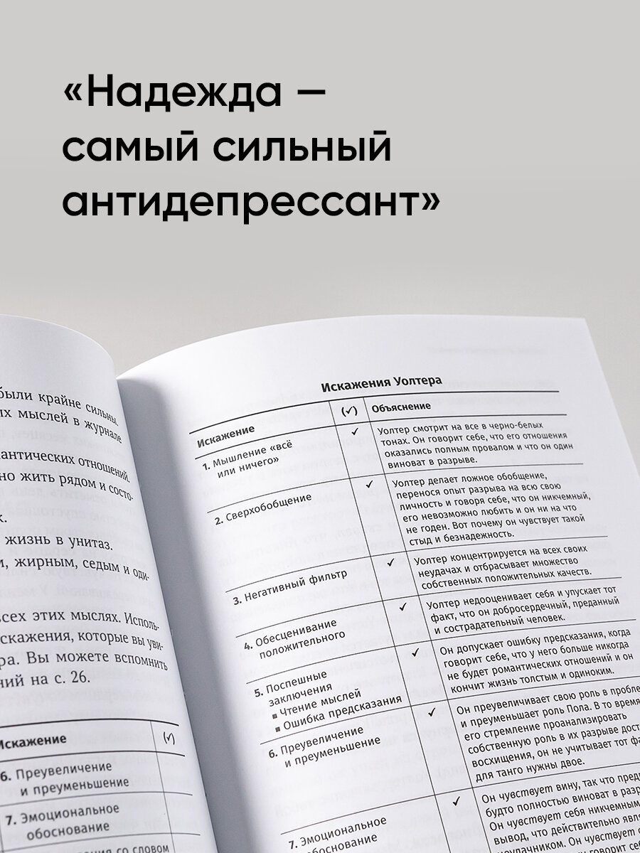 Если вы чувствуете себя не в своей тарелке, постоянную грусть, то данная книга явно для вас. Она написана простым понятным языком, материал четко структурирован, много клинических примеров. В книге большое количество схем и таблиц, которые приводят полученную информацию в систематизированное знание. Действительно, над материалом надо работать, а не просто читать как художественное произведение. Некоторые методики можно брать на вооружение в повседневной жизни, для общения с коллегами, друзьями и членами семьи. Рекомендую.