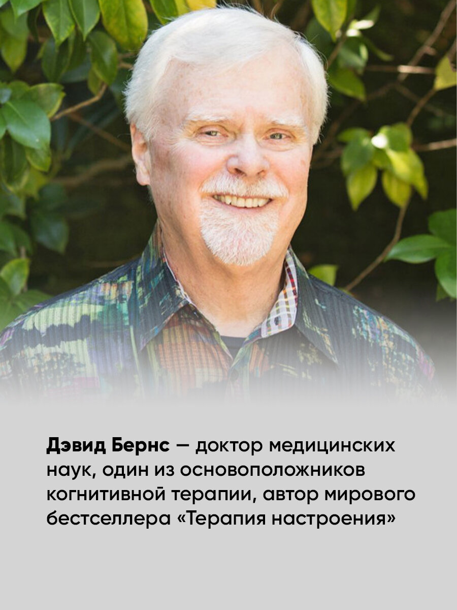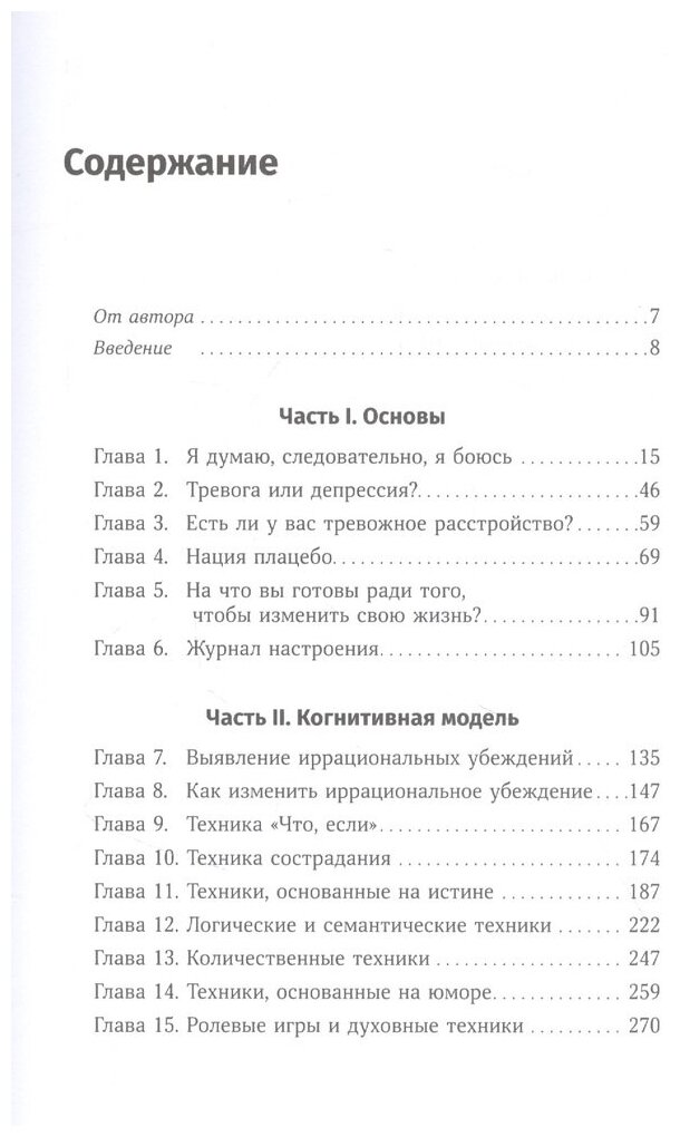 Вы переживаете, что излишне застенчивы или постоянно во всем сомневаетесь? Вы не можете нормально спать, беспокоясь о своей работе, здоровье или отношениях? Вас мучает страх высоты или начинается паническая атака, когда садитесь за руль автомобиля? Дело в том, что в основе тревожных состояний лежат иррациональные убеждения, которые делают вас уязвимым и способны привести к депрессии, утверждает психотерапевт Дэвид Бернс, автор международного бестселлера «Терапия настроения» и один из основоположников когнитивно-поведенческой терапии.