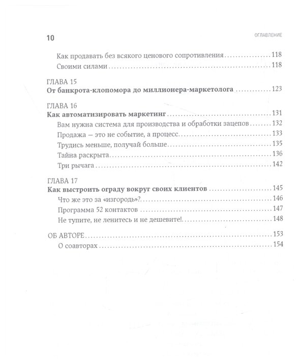 Для малого и среднего невиртуального бизнеса (магазинов, частнопрактикующих специалистов, ресторанов и пр.), не имеющего штата маркетологов и огромных бюджетов, есть старое доброе средство — директ-маркетинг. Теперь благодаря этой книге вы сможете проникнуть на кухню лучших специалистов и применить к своей выгоде их конфиденциальные, не афишируемые стратегии: бескомпромиссный бизнес-гуру Дэн Кеннеди и его сборная лучших профессионалов раскрывают все секреты и делятся реальными примерами маркетинговых ходов из собственной практики!