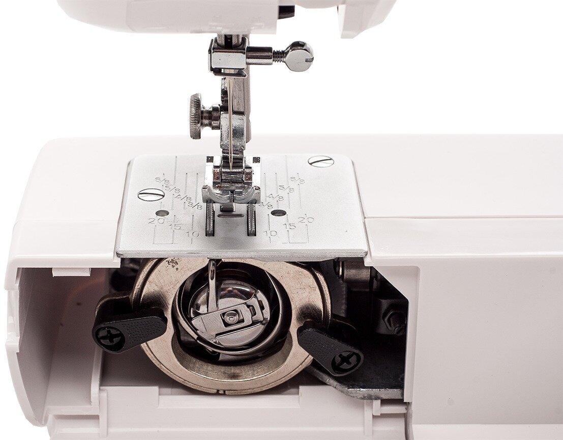 Безусловно хорошая моделька для начинающих. Сильно не заморочена на функциях, есть все необходимое. Полноценная швейная машина, но компактная. Занимает не много места. Инструкция также прилагается, но ничего сложного в подключении. Есть освещение. Удобно, что есть переносная ручка. Для меня просто идеал. Советую.